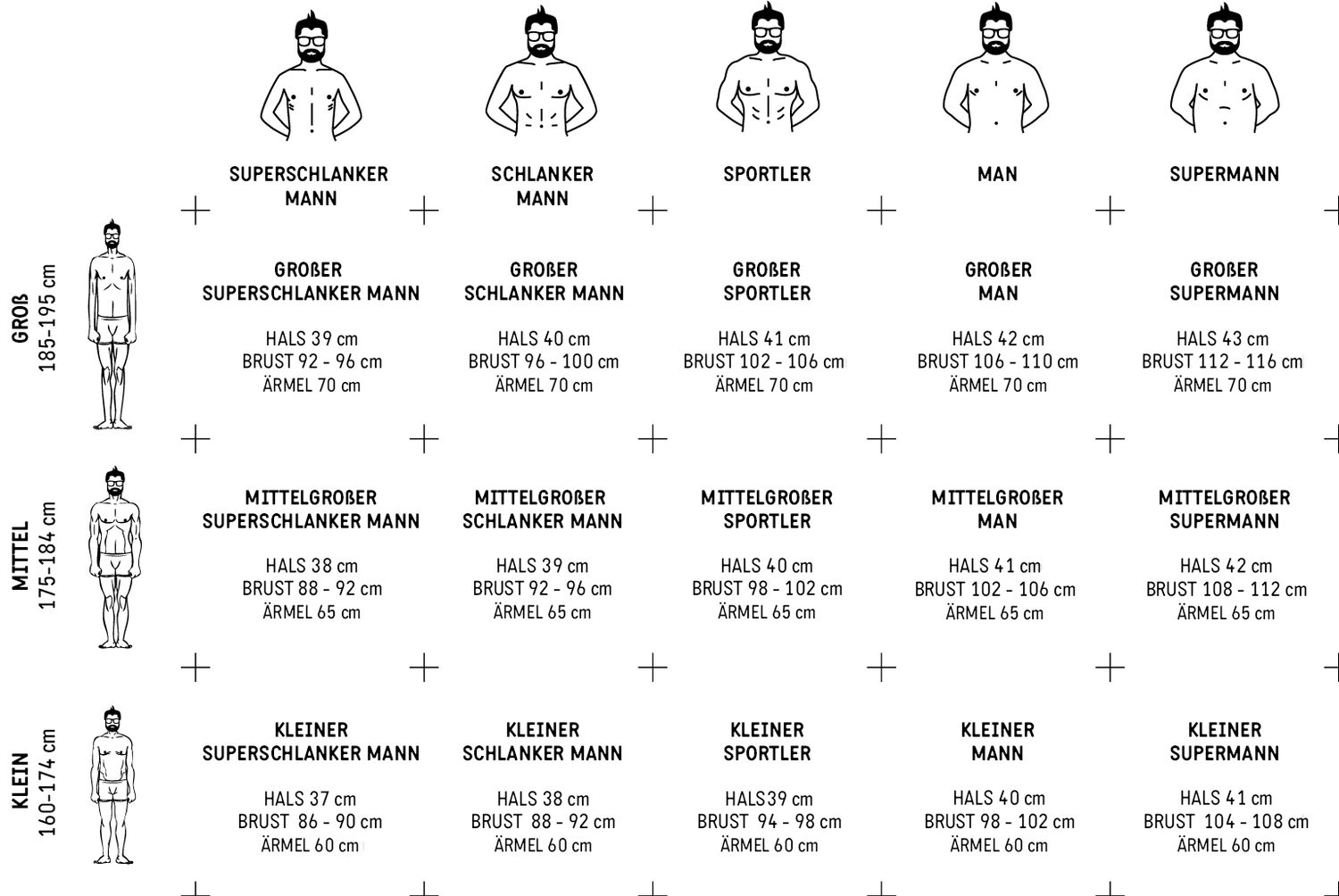 Die richtige Größe zu finden und sich diese auch zu merken, ist schwierig. Vor allem, wenn alle Hersteller unterschiedlich nummerieren. Wir nummerieren unsere Hemden nicht und Sie werden sich Ihre Größe sicher merken. Warum? Sie spiegelt nämlich wider, wer Sie sind.