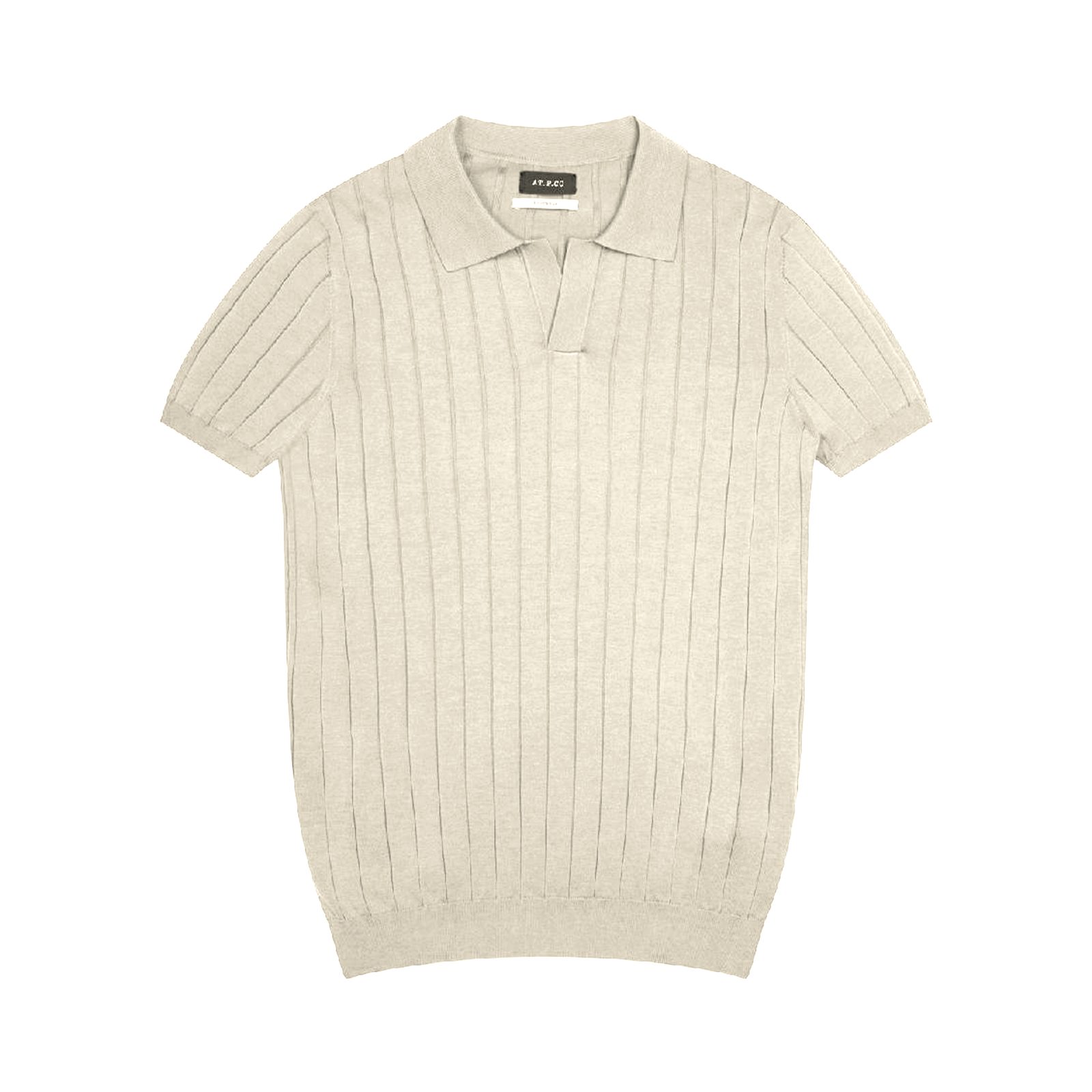Gestricktes AT.P.CO-Polohemd mit kurzen Ärmeln aus reiner Baumwolle in einem schönen, dezenten Cremefarbton. Die Vorderseite weist eine gerippte Struktur auf, die dem ansonsten schlichten Kleidungsstück etwas Charakter verleiht. Der Kragen ist sommerlich, im Old-Money-Stil und ohne Knöpfe. So trägt man es heute. Und so trug man es auch früher! Teil einer limitierten Saisonkollektion.