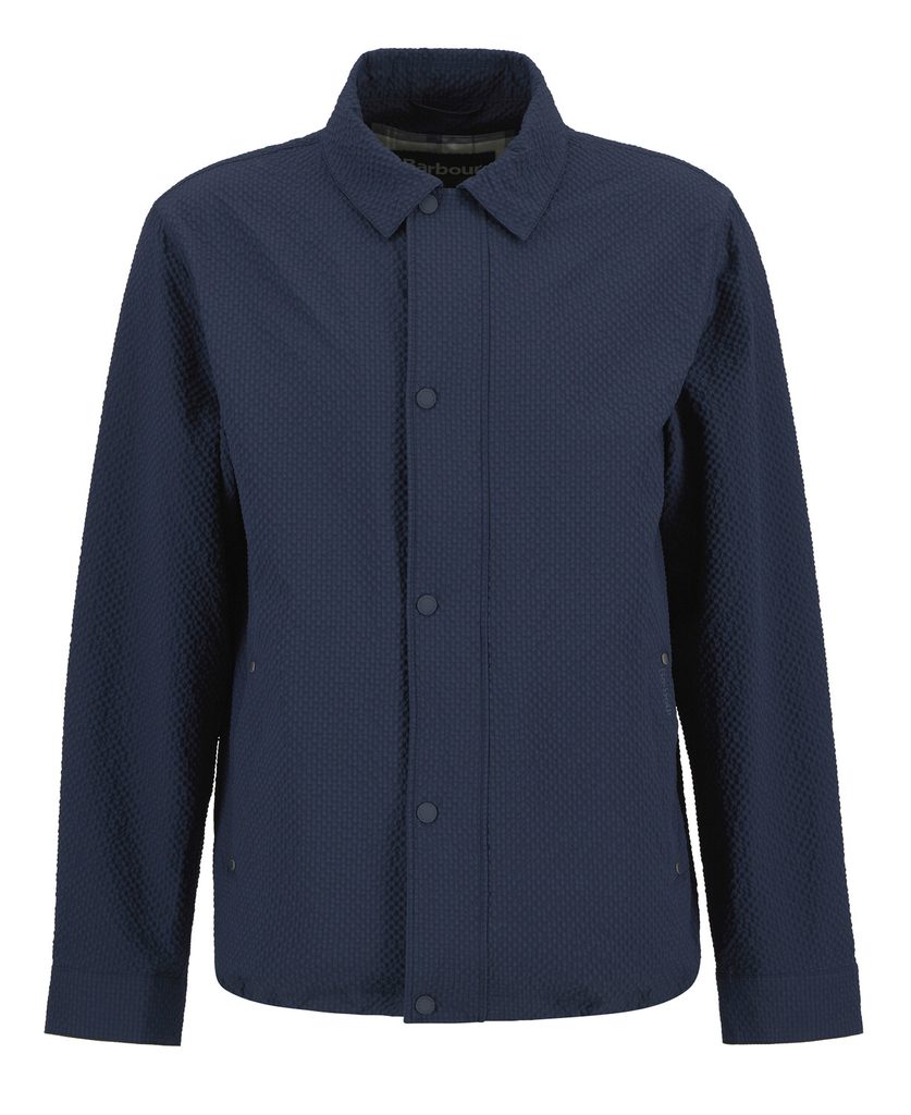Leichte Jacke mit geradem Kragen und klarer Silhouette. Das verwendete Material hat eine feine Struktur, die ein wenig an die Textur von Baumwoll-Seersucker erinnert. Sie wird mit einem Reißverschluss und farblich abgestimmten Druckknöpfen geschlossen, der Saum lässt sich zusätzlich mit Kordeln zusammenziehen. Zu den letzten Designelementen zählen zwei passend platzierte Seitentaschen und ein schärfer geschnittener Hemdkragen.