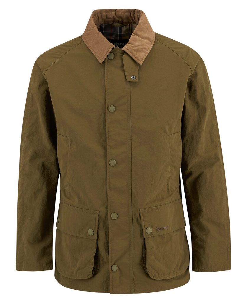 Leichte Frühlingsversion der klassischen gewachsten Jacke Ashby. Sie hat denselben Schnitt und denselben charakteristischen Kragen mit Cord, aber statt gewachster Baumwolle besteht der Körper aus trockenem Nylon mit wasserabweisender Beschichtung. Die Jacke ist nicht gefüttert, nur im oberen Rückenbereich befindet sich ein Tartan-Einsatz, sodass sie eher für die wärmeren Monate geeignet ist. Reißverschluss mit Patte und Druckknöpfen, unten zwei große aufgesetzte Taschen mit Patte und oben an den Seiten Handtaschen.