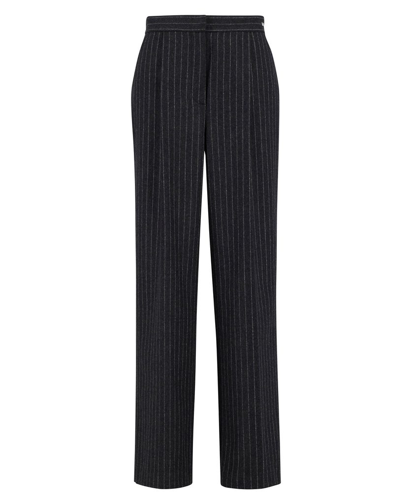 Luxuriös wirkende, aber dank ihres Schnitts dennoch bequeme und freie Hosen. Das Modell Blakely hat moderne, weite Hosenbeine und ist dank der verwendeten Wollmischung ein echtes Premiumprodukt. Abgesehen von den feinen Nadelstreifen ist es jedoch durchweg minimalistisch mit verdecktem Verschluss und ohne Gürtelschlaufen.