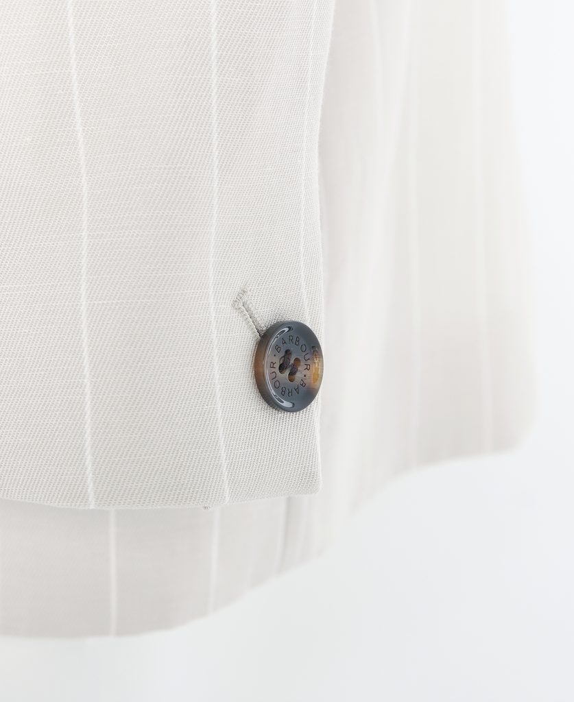 Pinstripe Streifen und ein Paar kontrastierende schwarze Knöpfe stehen im Vordergrund einer leichten, aber unverschämt femininen Sommerjacke in einem hellen Grauton. Das weiche und leichte Außenmaterial aus Lyocell und Leinen eignet sich gut für Sommertage, und das ebenfalls weiche Futter aus einer Viskosemischung rundet das perfekte Tragegefühl ab.