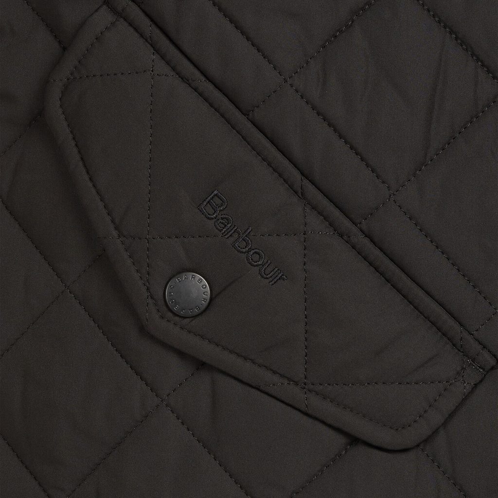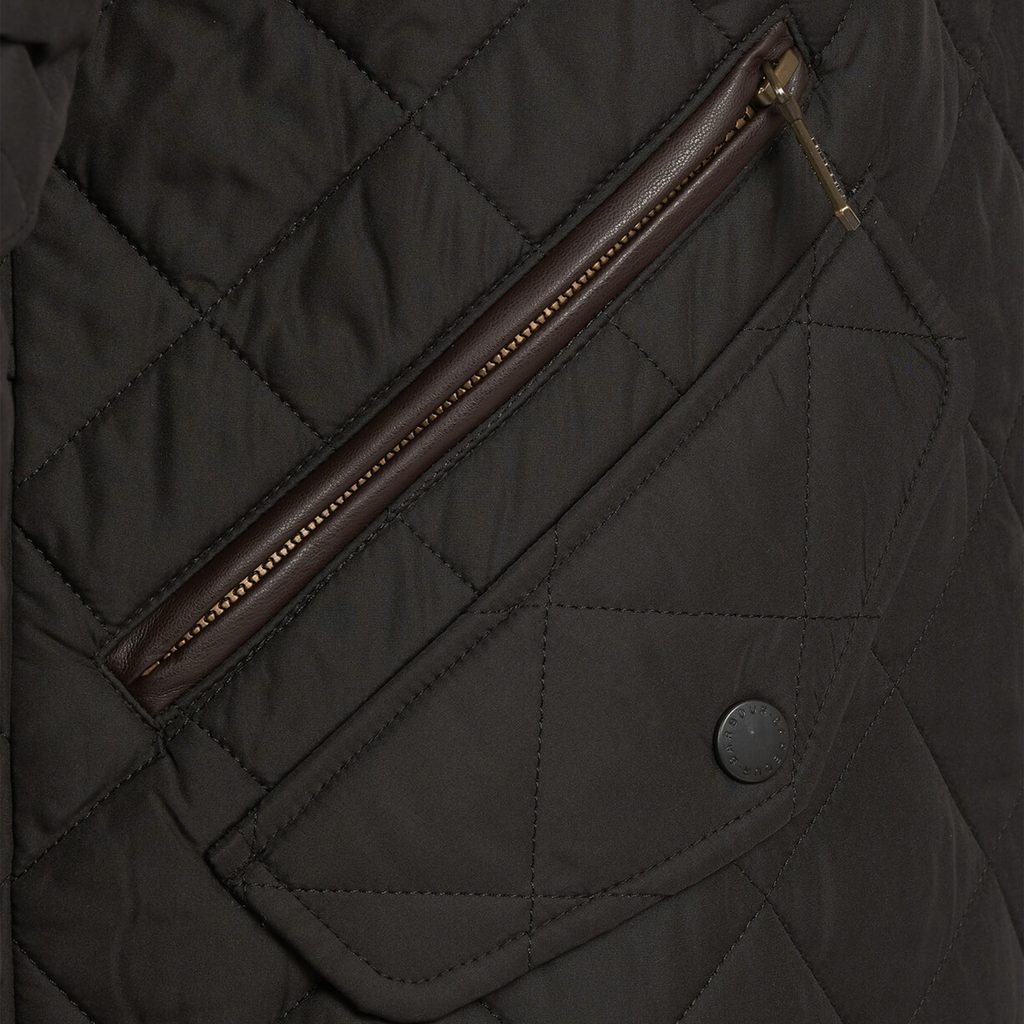 Barbour stellt seit vielen Jahrzehnten Reitjacken her. Die königliche Familie wird das gerne bestätigen. Bei dieser Jacke finden Sie einen leicht taillierten Schnitt, ein Paar klassische schräge Taschen und eine weitere Geheimtasche für Wertsachen. Der Verschluss ist - wie bei fast allen Winterjacken - ein Reißverschluss mit Druckknöpfen darüber, und der Kragen hat das typische Cord-Detail.