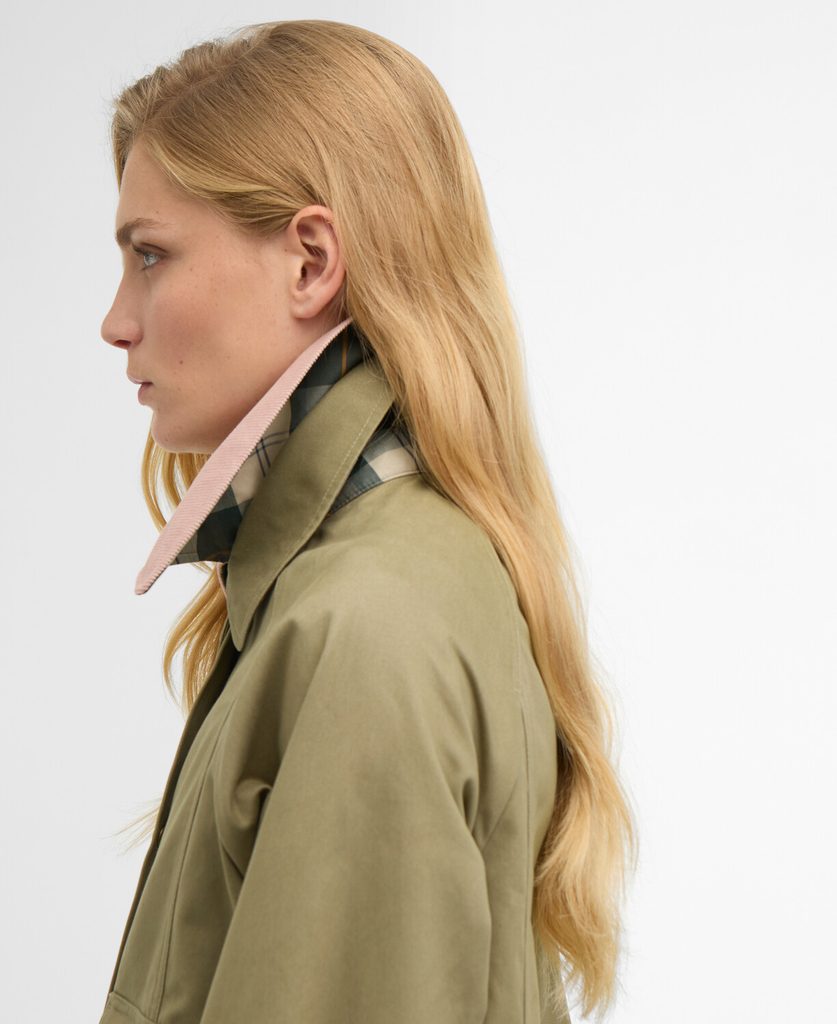 Die moderne Beadnell für die moderne Dame, hier in verkürzter Passform. Das bekannte Barbour-Jackenmodell wurde hier jedoch auch in den Details überarbeitet: In der regulären Länge ist die Jacke aus leichter, ungewachster Baumwolle gefertigt, ungefüttert und somit luftig – ideal für den Frühling und die Übergangszeit. Den oberen Teil der Jacke dominiert ein auffälliger rosa Cordkragen, der zudem abnehmbar ist. Vorne erwarten Sie Eingrifftaschen und zwei aufgesetzte Taschen mit Pattenverschluss. Wenn Sie die Ärmel hochkrempeln, kommt zudem ein Tartan-Detail an den Manschetten zum Vorschein. Es ist ein echtes Schmuckstück, wie Sie sehen.