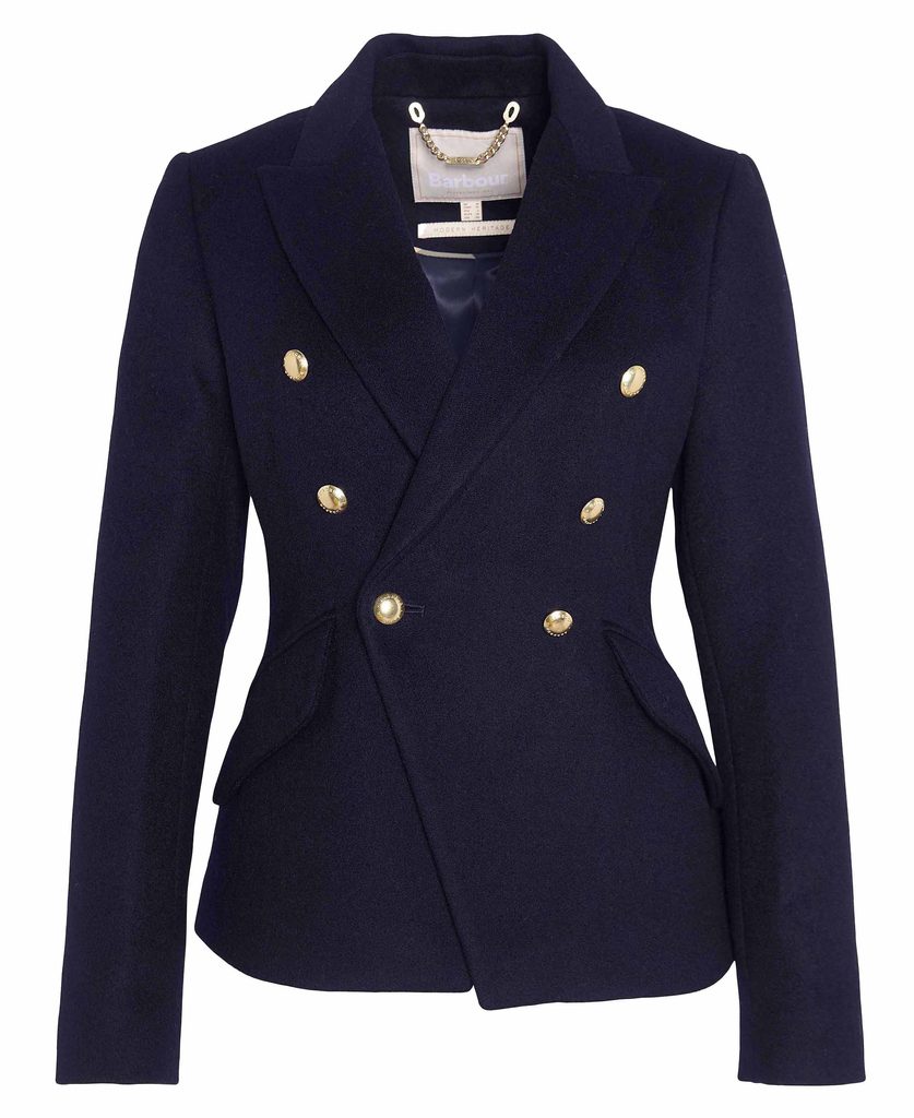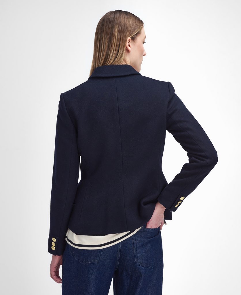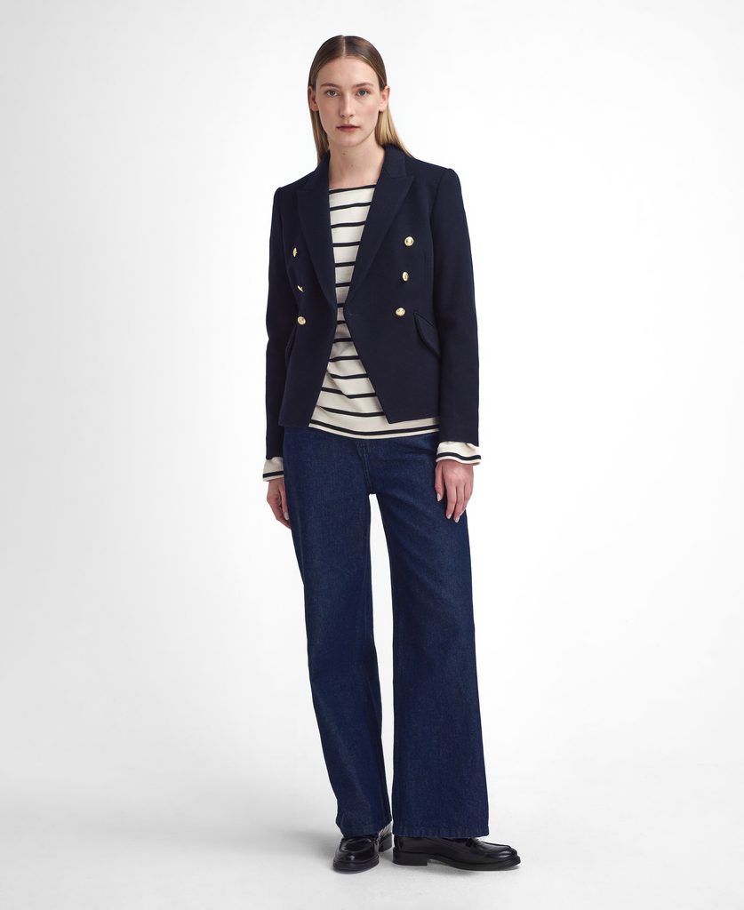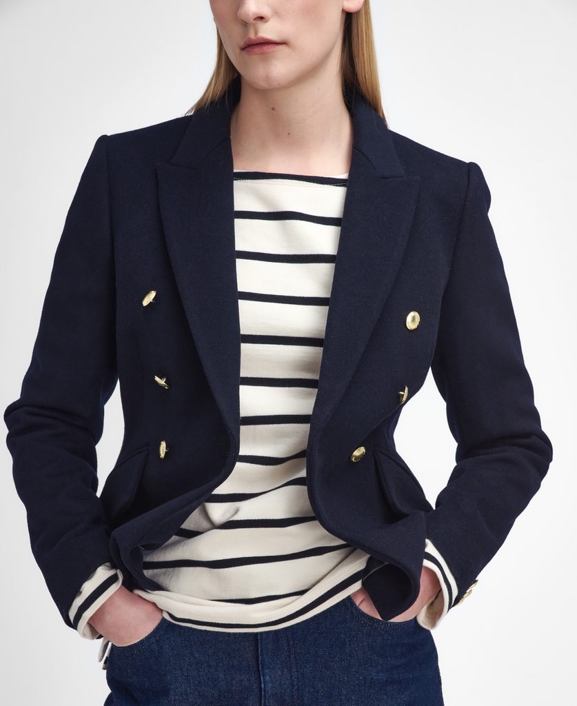 Dieser optisch klare Blazer lässt sich von traditionellen Militäruniformen inspirieren und transformiert sie in die Welt der modernen Mode. So erwarten Sie beim Modell Darly sechs doppelte Reihen markanter goldener Knöpfe, ein spitzes Revers, leicht gepolsterte Schultern, klassische „Jackentaschen“ mit Klappen und eine insgesamt leicht taillierte Passform. Kurzum, ein repräsentatives Stück.