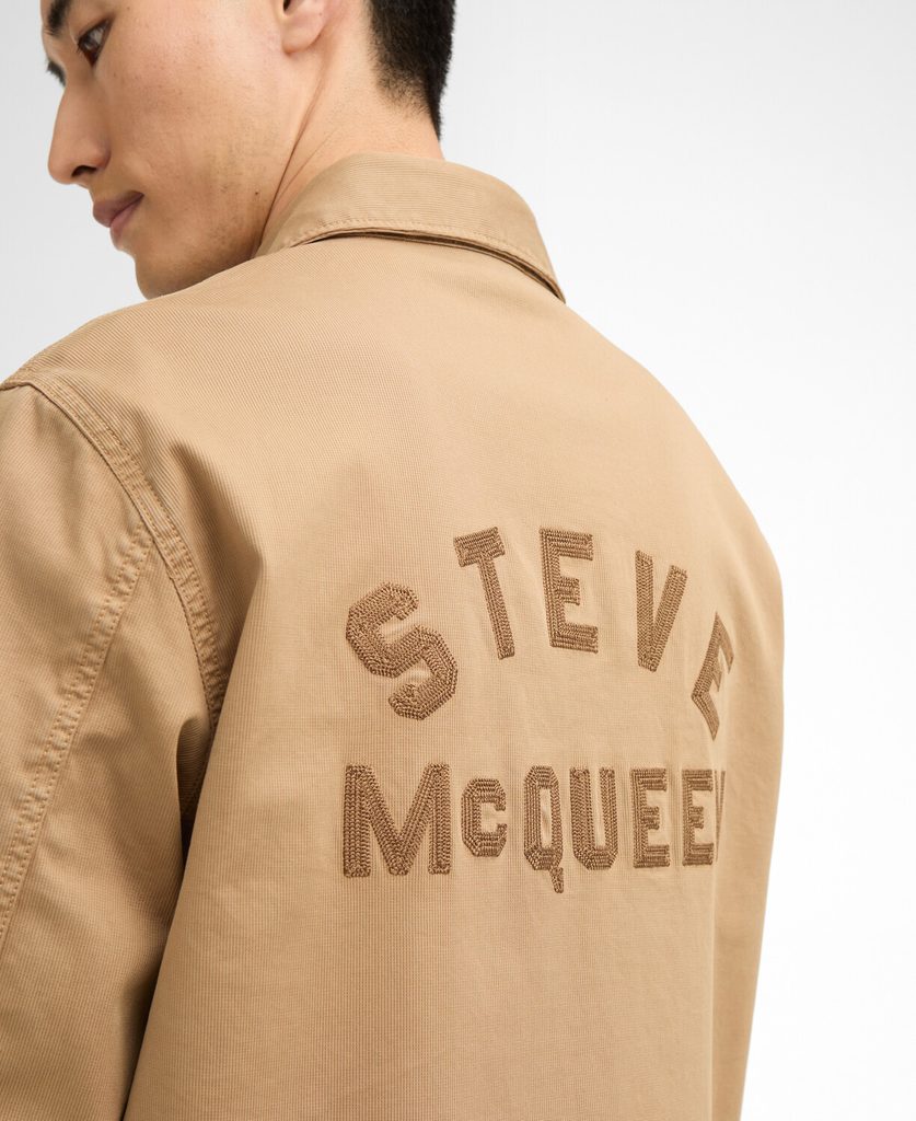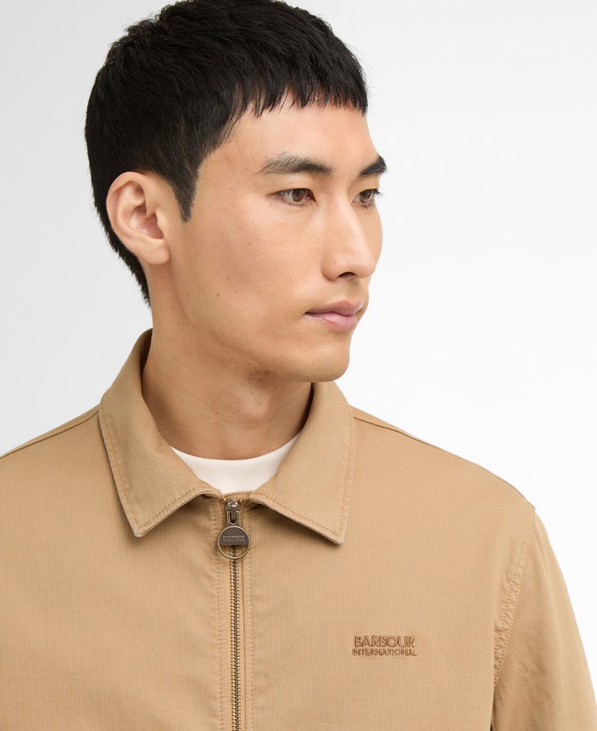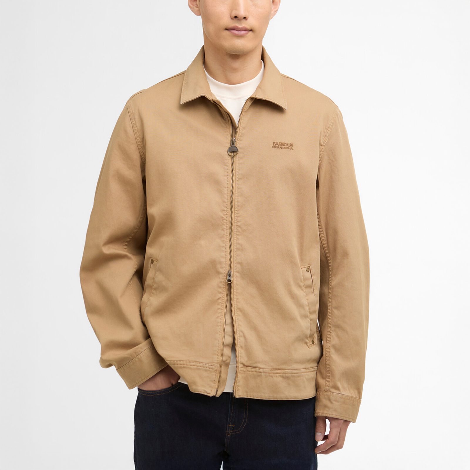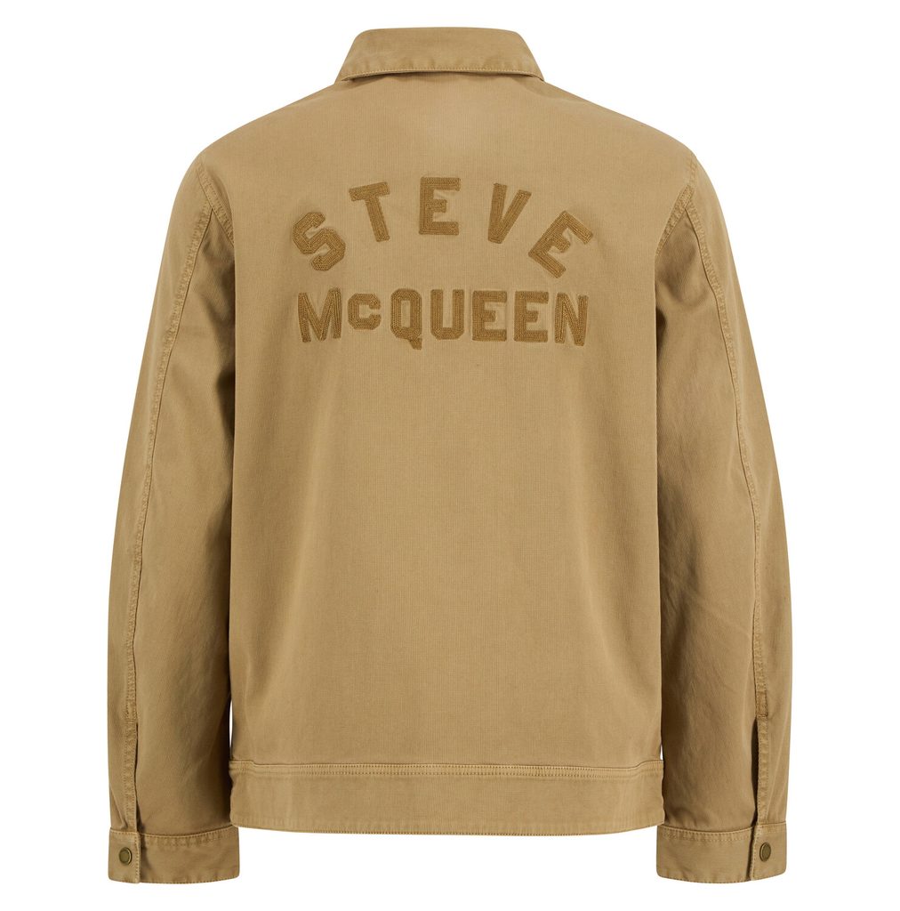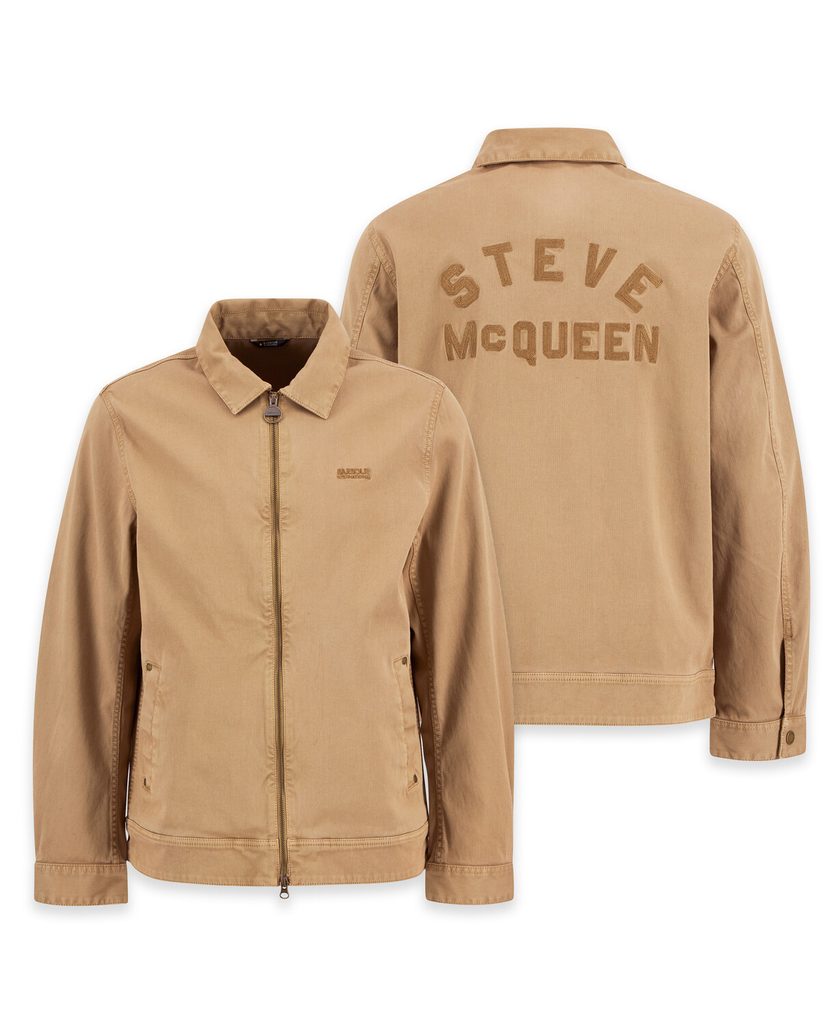 Leichte Coach-Jacke von Barbour International aus gewaschenem Baumwolltwill. „Coach“, weil dieser minimalistische Jackentyp von Baseballtrainern populär gemacht wurde. Und minimalistisch ist sie tatsächlich: gerader Kragen, Reißverschluss vorne, zwei Reißverschlusstaschen an den Seiten und ein elastischer Saum an der Taille. Das ist alles. Nur hinten ein Verweis auf Steve McQueen, den Schauspieler und Rennfahrer, der bereits das Gesicht der International-Edition des legendären Labels Barbour ist.