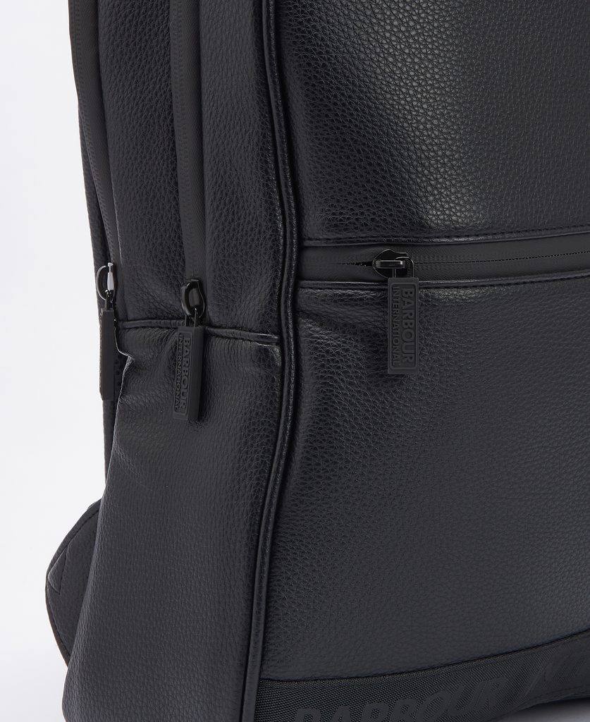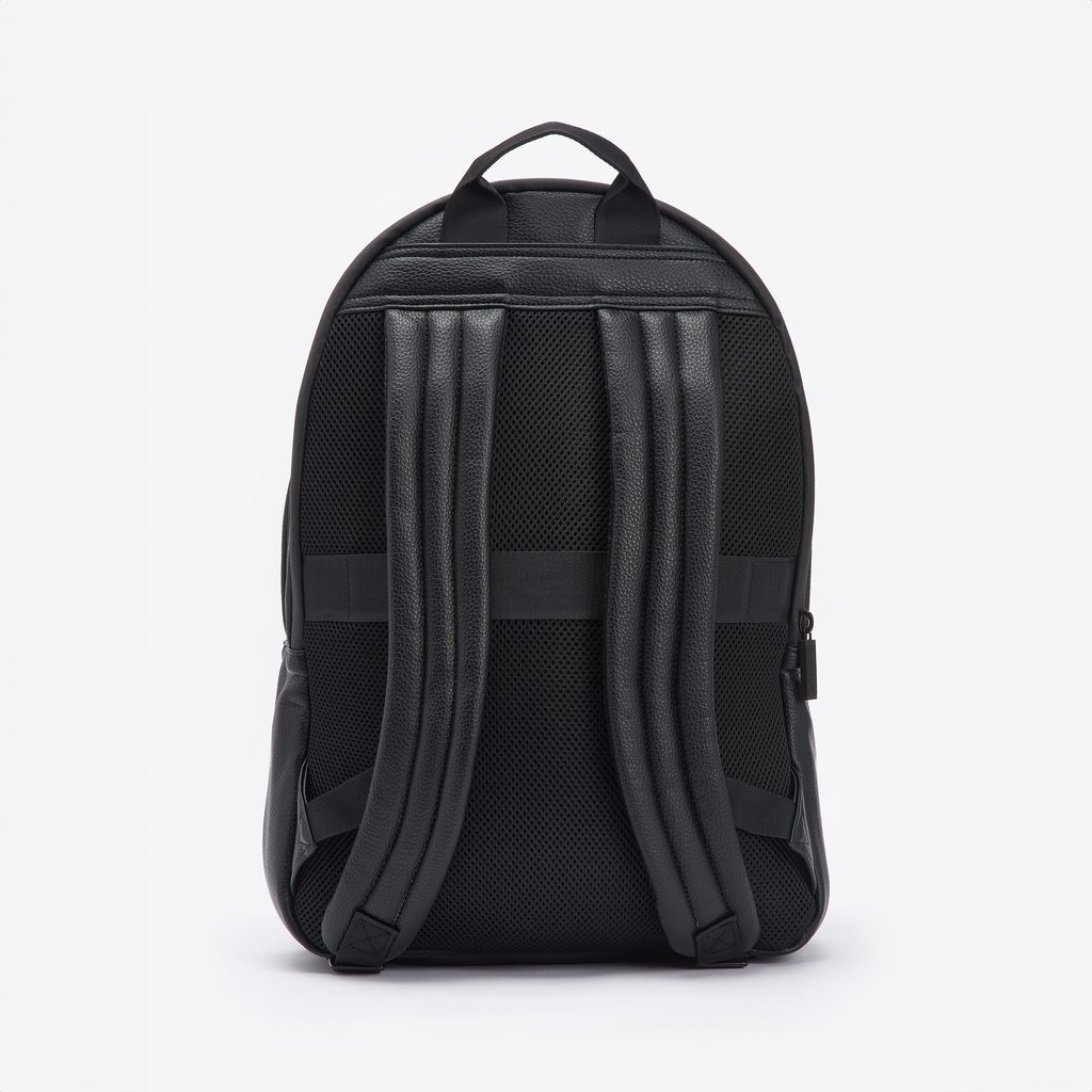 • Rucksackkörper aus hochwertigem schwarzem Kunstleder