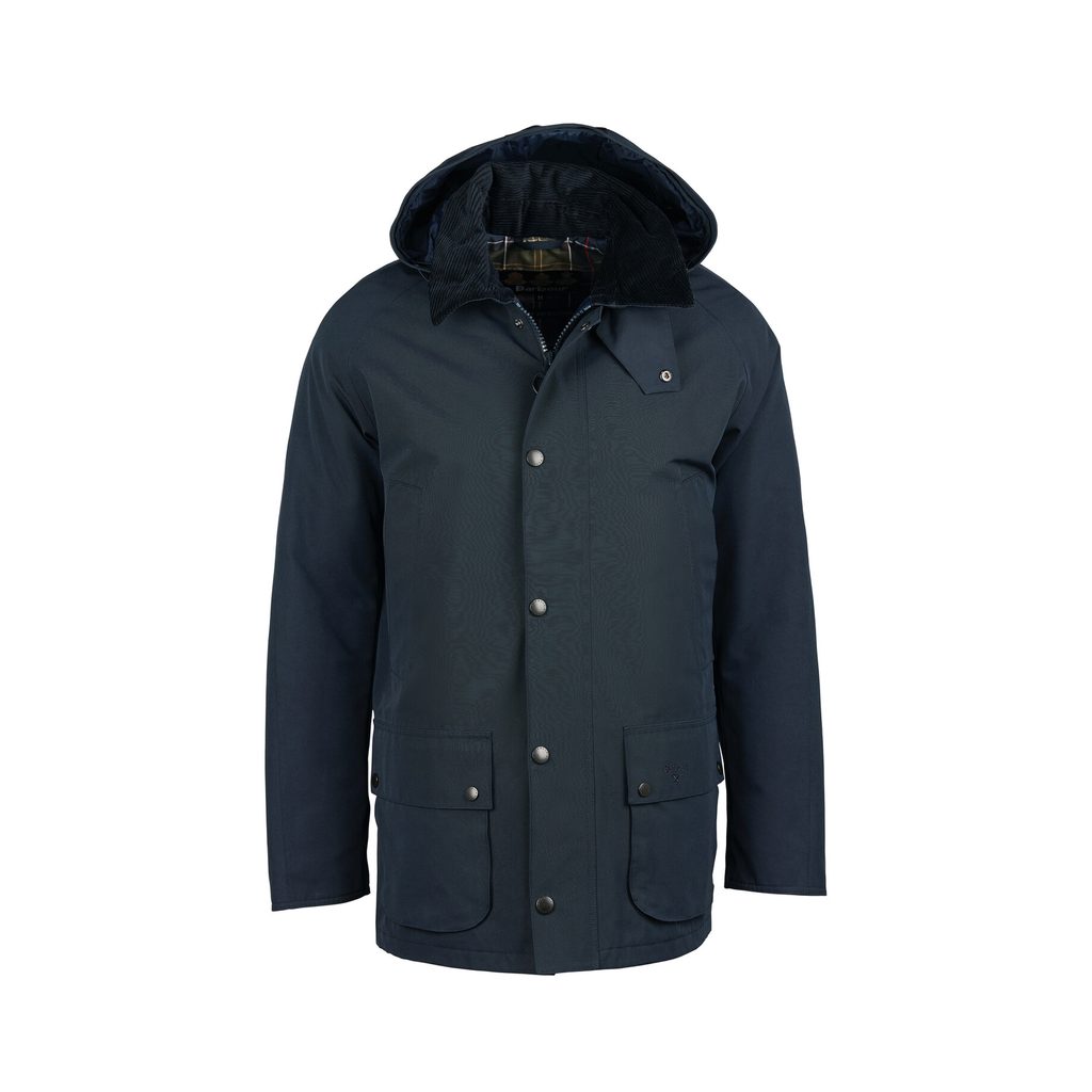 Eine Wintervariante der klassischen Jacke Ashby von Barbour. Sie ist länger als der Klassiker, hat eine abnehmbare Kapuze, Reißverschluss und Druckknopfverschluss, zwei warme Eingrifftaschen und ein tolles isolierendes Steppfutter. Der obligatorische Cordkragen und die Tartan-Details auf der Innenseite dürfen nicht fehlen, und auch der gut sitzende, leicht taillierte Schnitt ist ein Klassiker.