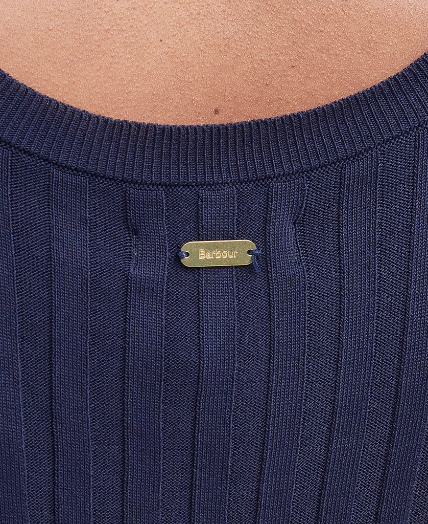 Leichtes Sommertop in Rippenstrick aus einer angenehm weichen Mischung aus Viskose und Polyamid. Die dunkelblaue Farbe und das ärmellose Design erlauben es, es alleine zu tragen (in dem erwähnten Sommer), schließen aber nicht aus, dass man es in den Übergangsmonaten übereinander trägt. Das Design wird durch kleine Rippen am Ausschnitt und an den Trägern sowie eine dezente Logoplakette im Nacken ergänzt.