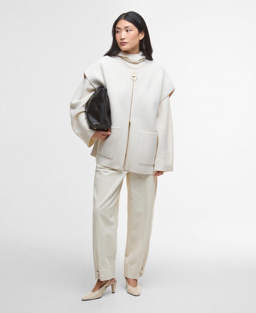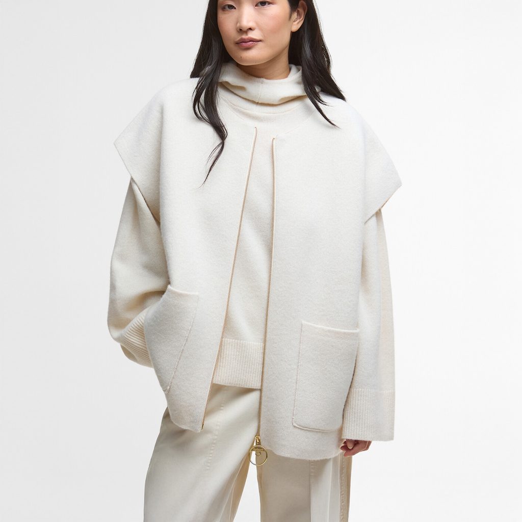 Eine Damenweste aus Wolle, die ein bisschen wie eine Universalschicht ist. Sie kann allein oder über einem T-Shirt oder einer Bluse getragen werden – und sieht immer gut aus. Das liegt vor allem an ihrem lockeren Schnitt, den zwei praktischen offenen Taschen und dem vergoldeten Reißverschluss, der dieses Teil schön unterteilt.