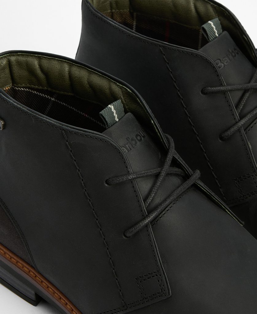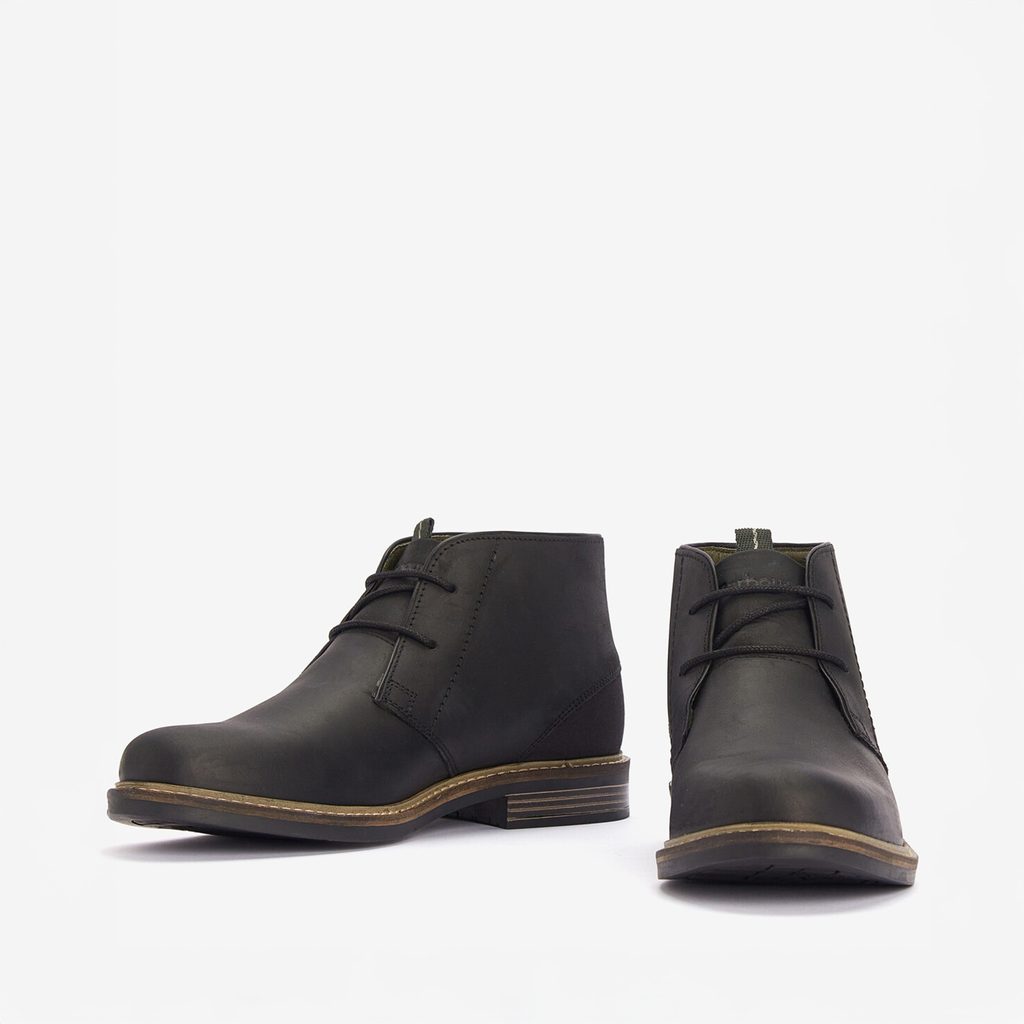 Stilisierte Desert Boots mit einem Hauch von Cowboy-Charme dank erhöhter Spitze und höherem Absatz sind die richtige Wahl für ungewöhnliche Ästheten. Ihre Gummisohle ist auf der Unterseite mit dem Barbour-Designmuster versehen, die Schnürung hat zwei Paar offene Ösen.