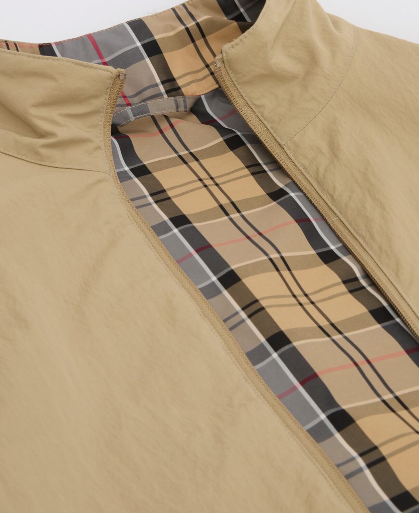 Barbour Korbel ist eine leichte Frühlingsjacke aus Polyamid mit wasserabweisender Beschichtung, die beidseitig getragen werden kann – die einfarbige Seite dient als schlichte Grundlage für jedes Outfit, die Tartan-Seite als auffälligere Variante. Der Schnitt ist kürzer und lockerer mit einem elastischen Saum und Lycra-Bündchen, sodass sie auch über einem Polohemd oder einem leichteren Pullover bequem sitzt. Sie hat einen Reißverschluss und seitliche Eingrifftaschen.