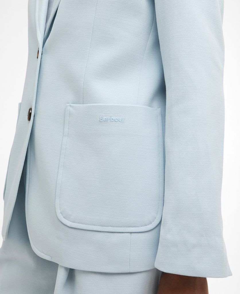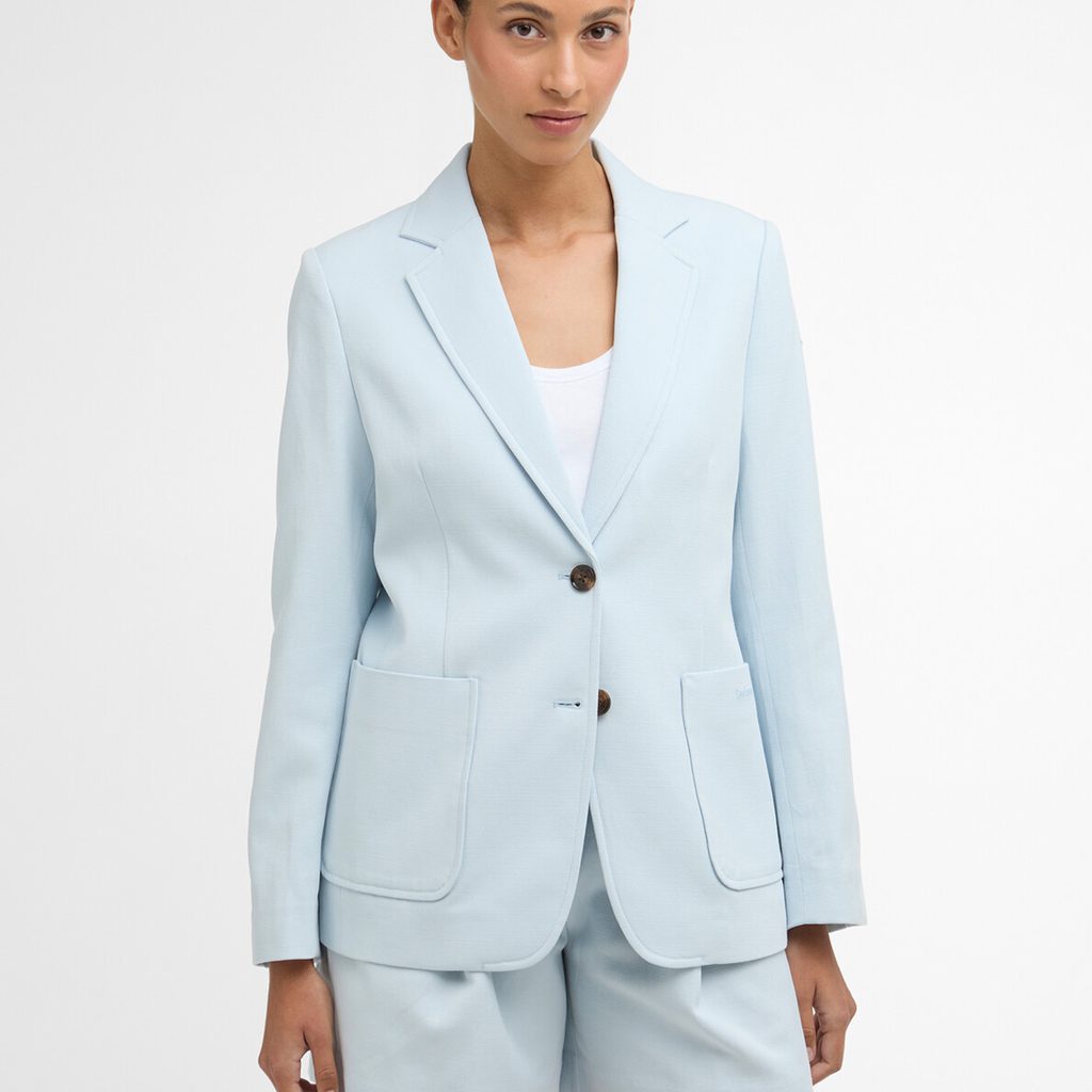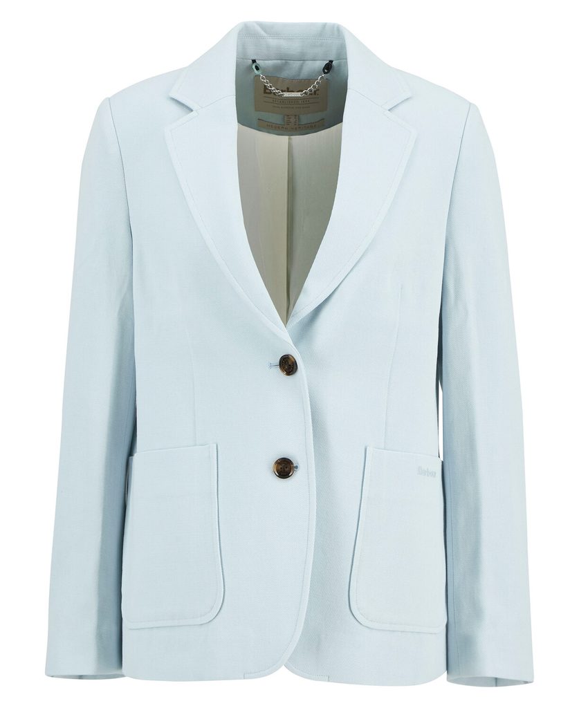 Der neueste Sommer-Neuzugang in der eleganten Damenkollektion des britischen Labels Barbour. Der leichte Damenblazer „Salthill“ ist in einem wunderschönen Hellblau aus einem Baumwollmischgewebe gefertigt und verfügt über eine weiche Passform, die an den Schultern nicht einengt.