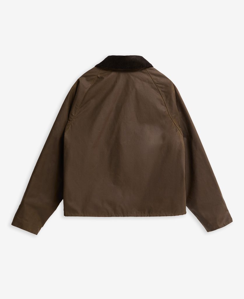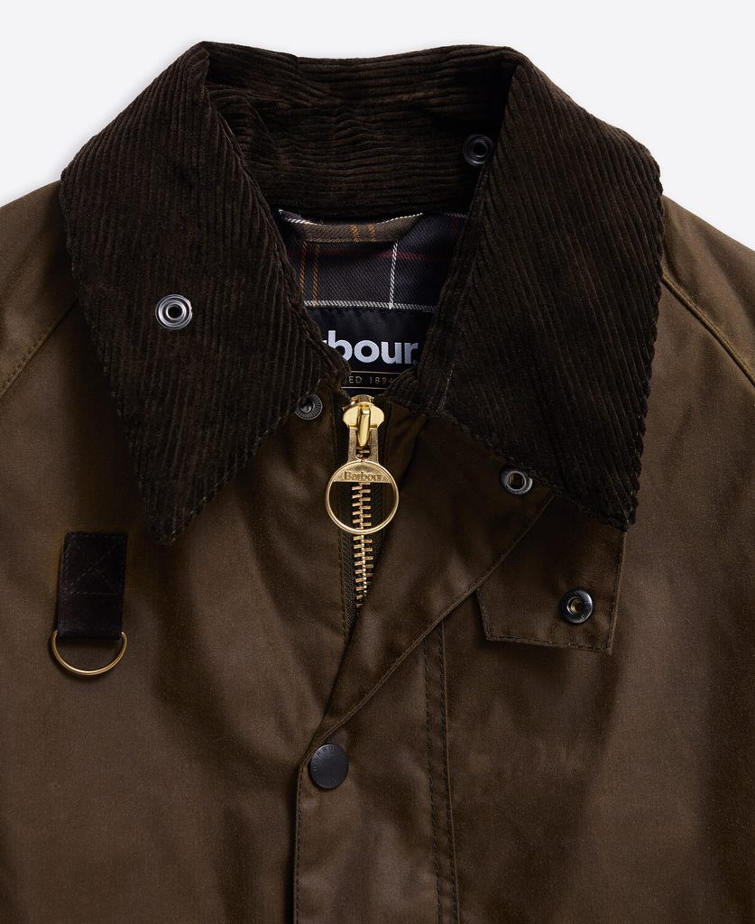 Natürlich fehlen auch die typischen Barbour-Details nicht: ein hoher Cordkragen, den man hochschlagen und die Lasche schließen kann, um sich hervorragend vor Wind zu schützen; zwei tiefe, geräumige Taschen mit Patte; elastische Bündchen, die unter der äußeren Materialschicht verborgen sind.