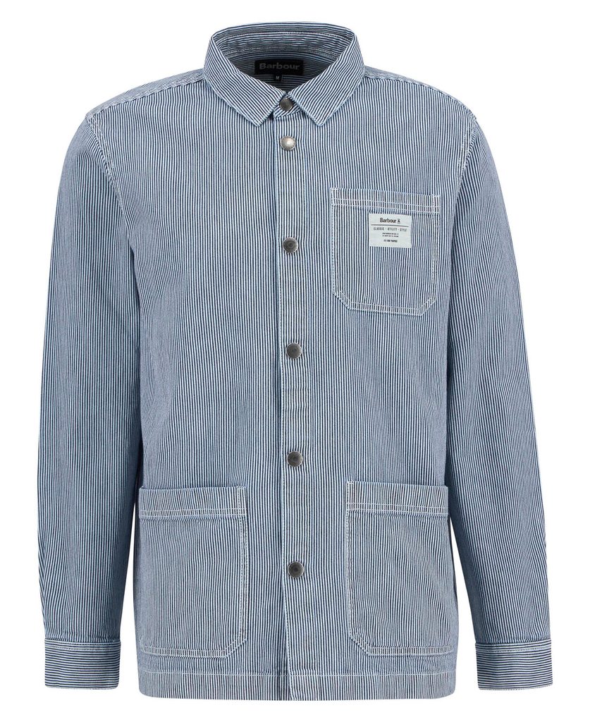 Das eng gestreifte Overshirt im Ticking Stripe-Muster (das in seinen Eigenschaften dem Bahnsteig in Svinov in nichts nachsteht) ist die Essenz der Workwear in der diesjährigen Juni-Vorschau auf die kommende Barbour-Kollektion. Es hat einen klassischen Schnitt mit Platz zum Kombinieren, zwei großzügige offene Taschen und eine kleinere Brusttasche mit Logo. Der Verschluss erfolgt mit für Jeans typischen Aluminiumknöpfen.