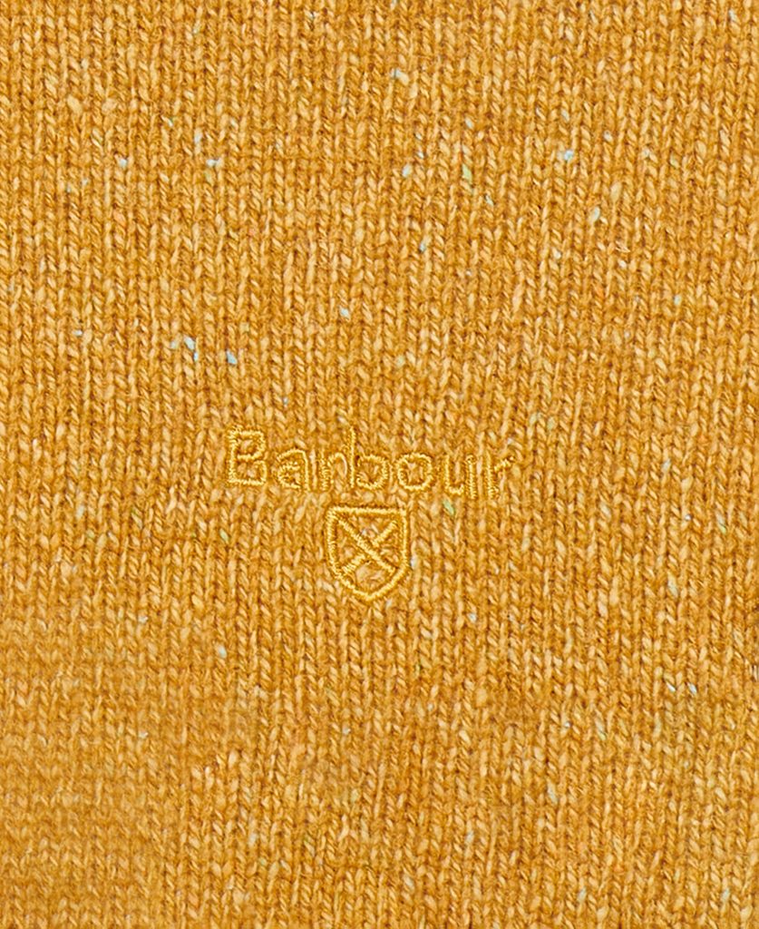 Ein sattgelber Pullover aus einer Mischung aus Lammwolle und Polyamid. Nicht nur dank der Materialmischung, sondern auch dank der ausgewählten Fasern besticht er durch seine kontrastreiche Maserung auf der gesamten Oberfläche. Ein kleiner Anteil Seide verstärkt den winterlichen Tragekomfort dieses mittelstarken Pullovers. Selbstverständlich mit dezenter Barbour-Stickerei auf der Brust, klassischem Schnitt und in vielen Farben erhältlich, ganz nach Ihrem Geschmack. Ein stilvoller und warmer Begleiter für die kalten Monate.