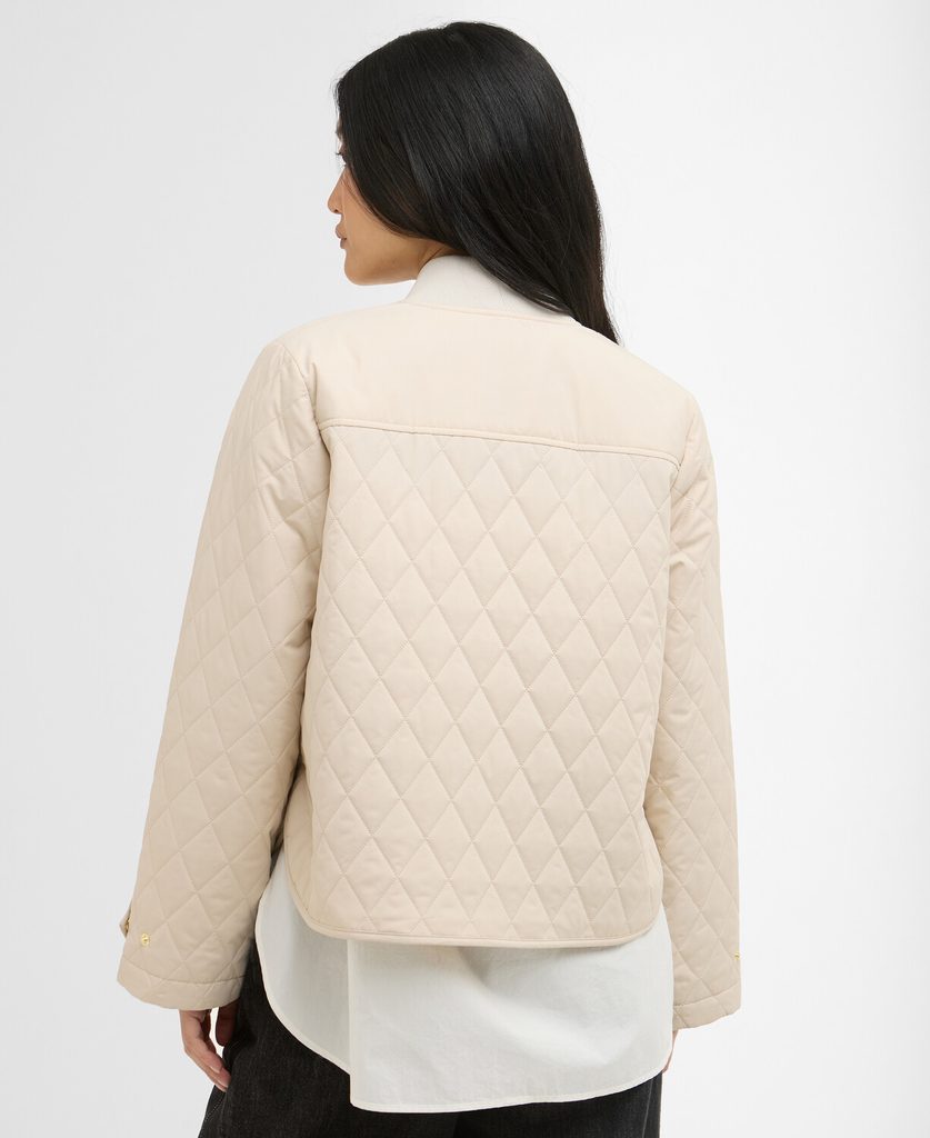 Leichte, gesteppte Damenjacke, die sich mit ihrem verkürzten Schnitt und dünneren Material besonders für die Übergangszeit eignet. Die Jacke Whillan hat einen gewebten Kragen, der für Bomber- oder Sportjacken charakteristisch ist, einen kurzen Schnitt und goldene Details, ist dabei aber dennoch geschmackvoll. Die ultraschallverschweißten Nähte – also ohne manuelles Nähen – halten die Wärme und Form, ohne zusätzliches Gewicht.