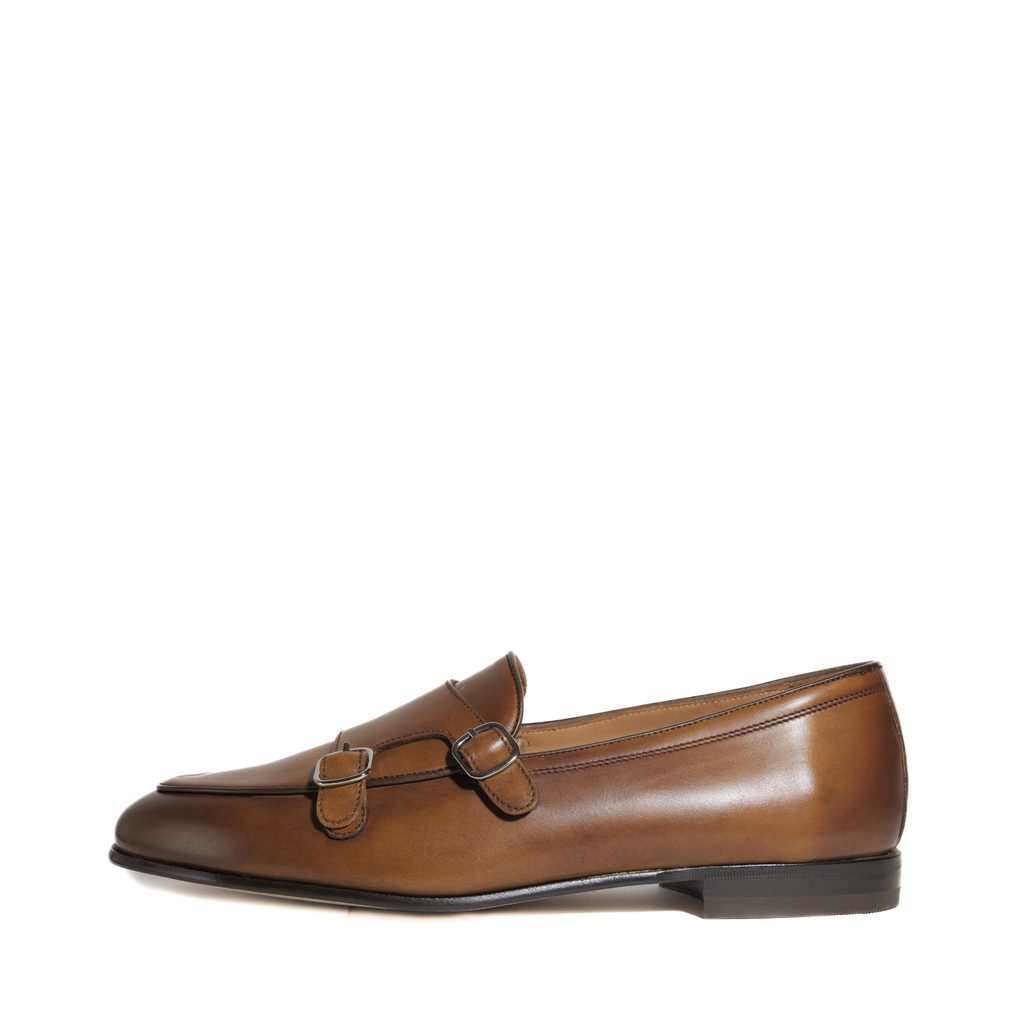 Auch wenn sie nicht über die charakteristische Schleife verfügen, können wir mit gutem Gewissen sagen, dass es sich hier um Loafer im belgischen Stil handelt. Sie haben eine sehr schlanke Silhouette (sind aber dennoch relativ breit und laufen sich sehr schnell ein) und anstelle der belgischen Schleife gibt es hier eine dekorative Doppelschnalle über dem Spann. Das Obermaterial besteht aus glattem, handpatiniertem Leder, wobei jedes Paar einen leicht unterschiedlichen Farbverlauf zwischen den Nuancen aufweist. Die Sohle besteht aus Leder – im Hauptbereich – und Vibram-Gummi – an der Ferse.