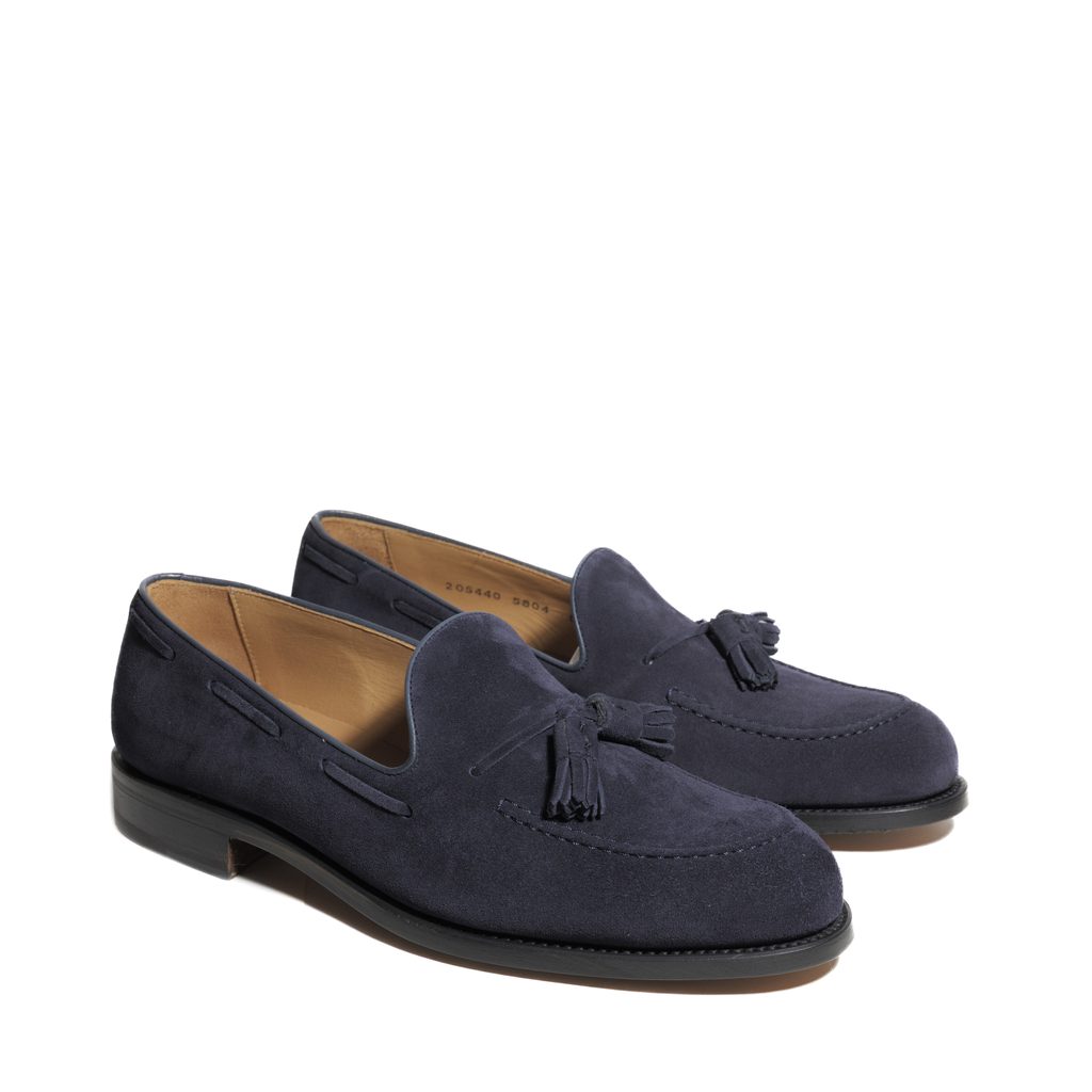 Tassel Loafers – Mokassins mit den charakteristischen Zierquasten am Spann – sind wohl die lässigste Variante unter den formellen Schuhen. Dank ihrer Ausführung aus geschliffenem Leder (umgangssprachlich: Wildleder) sind sie zudem nahezu pflegefrei. Ihr natürlicher Charme kommt beispielsweise in Kombination mit einem Blazer und einer Chino-Hose hervorragend zur Geltung.