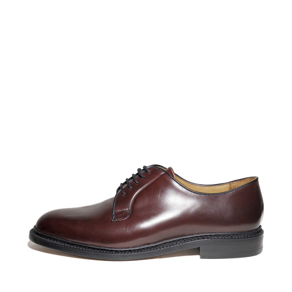 Diese Derby-Schuhe sind die perfekte Kombination aus Eleganz, Handwerkskunst und Strapazierfähigkeit. Sie sind aus echtem Cordovan-Leder gefertigt – einem Pferdeleder, das strapazierfähiger als Rindsleder ist und keine klassischen Falten bildet. Dank der Goodyear-Welt-Konstruktion sind sie besonders langlebig und ermöglichen eine vollständige Erneuerung der Sohle. Sie passen sowohl zu einem Anzug als auch zu einem legereren Smart-Casual-Outfit.