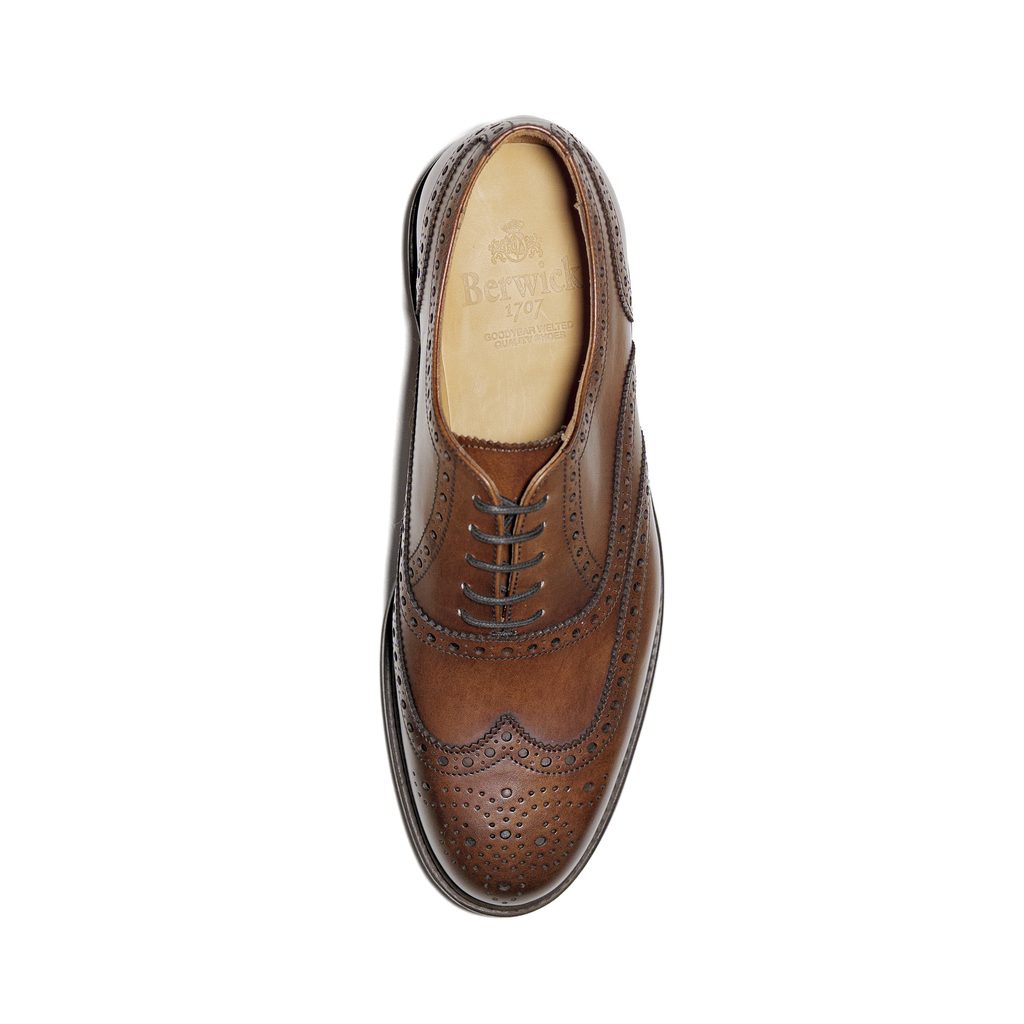 Etwas ungewöhnliche Oxford-Schuhe von Berwick, die britische Eleganz in solider spanischer Verarbeitung verkörpern. Dekorative Lochungen und die charakteristische „Wingtip“-Spitze verleihen dem Modell einen unverwechselbaren Look, während die Goodyear-Welt-Konstruktion eine lange Lebensdauer und außergewöhnlichen Komfort garantiert. Die ideale Wahl für formelle und smarte Freizeit-Outfits.