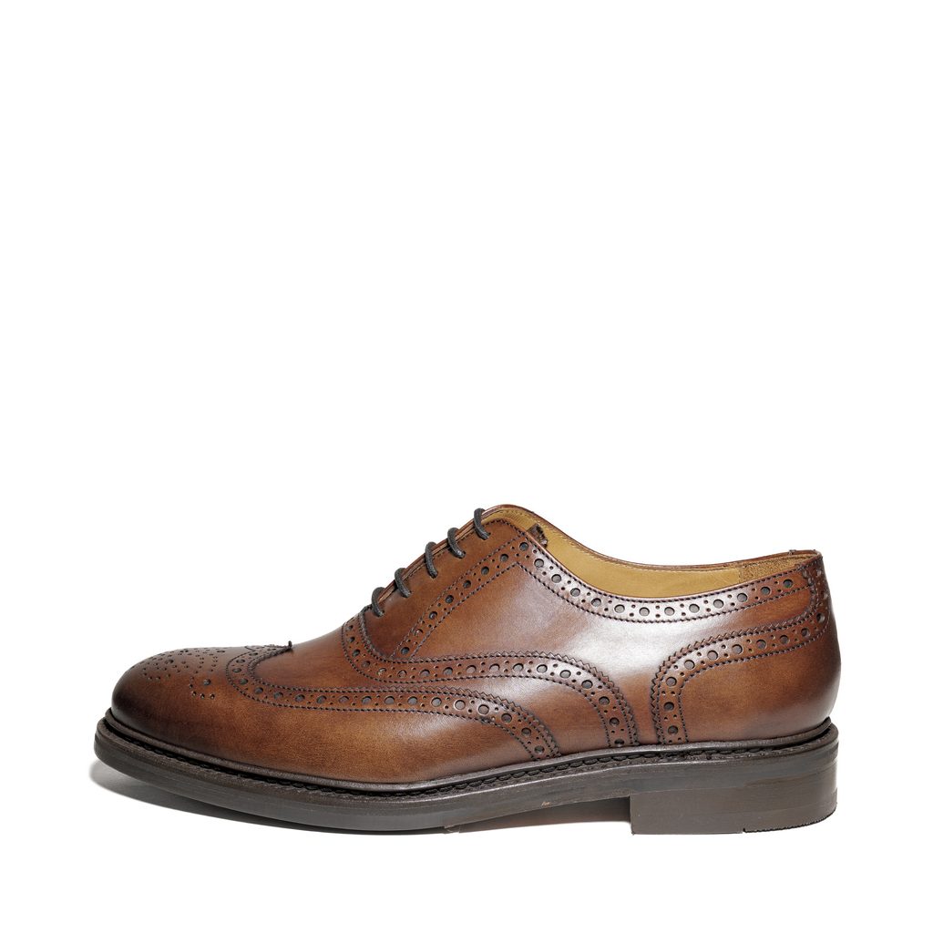 - Klassischer Brogue-Stil mit dekorativen Lochverzierungen und Flügelspitze
