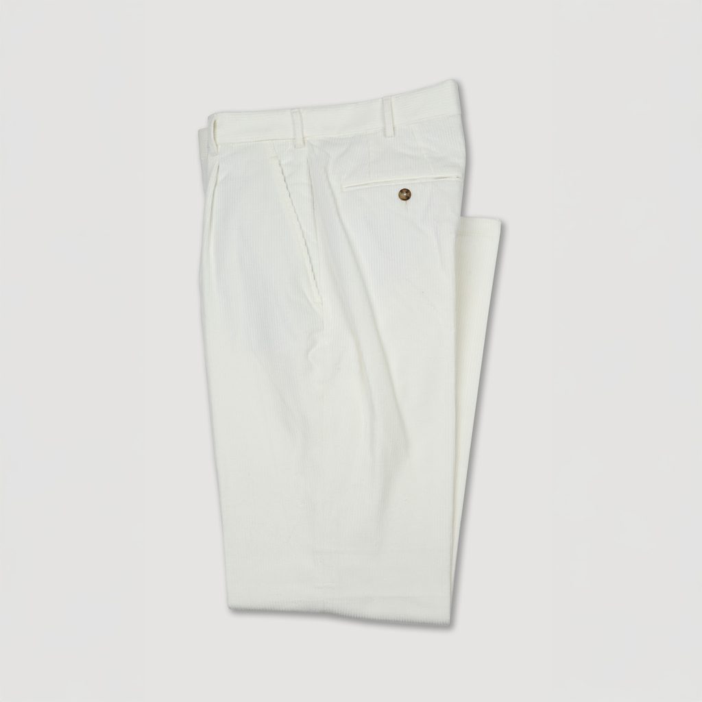 Herren-Chinohose aus Stretch-Cord der Marke Brooksfield in Elfenbeinfarbe, mit raffiniertem Schnitt und Bundfalten vorne für einen eleganten Look und gleichzeitig hohen Tragekomfort. Hergestellt aus hochwertigem Baumwollstoff mit Stretchanteil, der mehr Bewegungsfreiheit ermöglicht und gleichzeitig ein formelles, sehr vorteilhaftes Aussehen bewahrt.