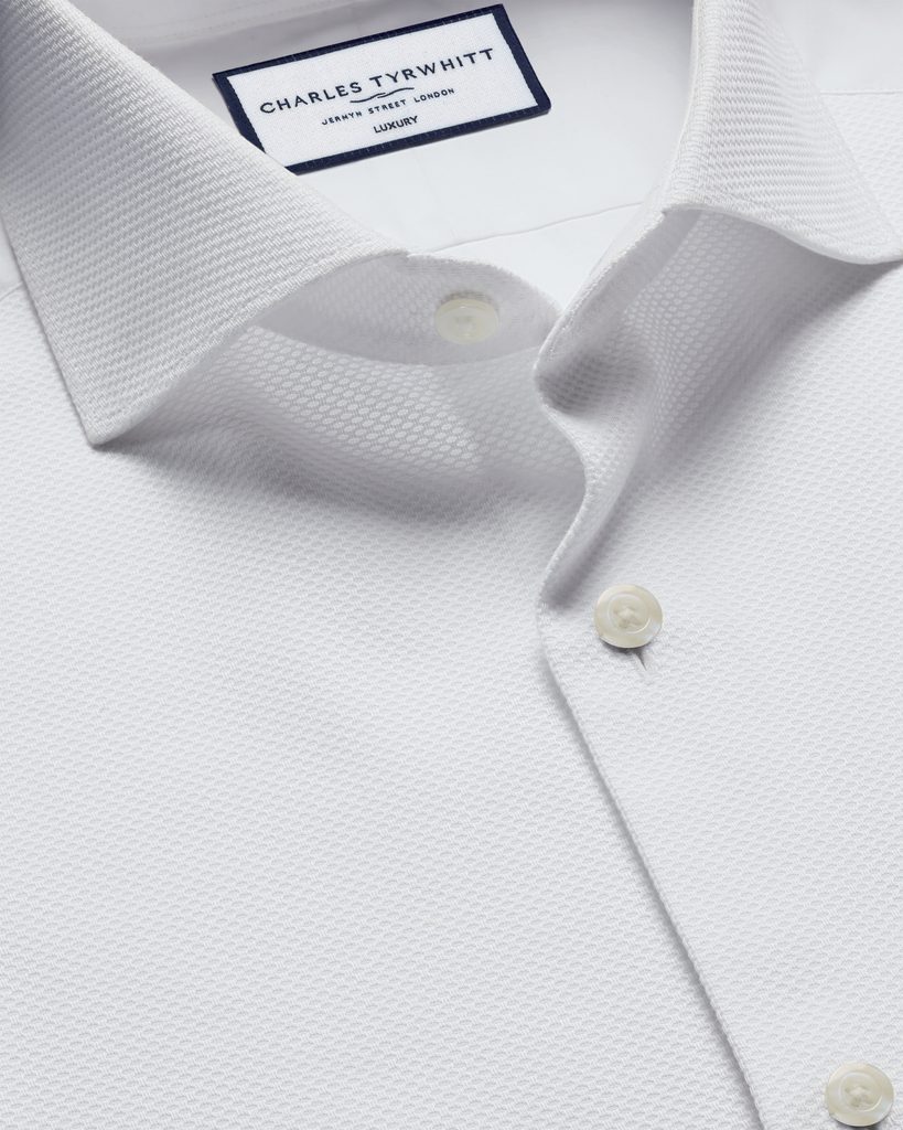 Auch in der Neuauflage ist es ein festliches Stück mit allem, was das Black-Tie- braucht: strahlendes Weiß, lange Ärmel mit Manschettenknöpfen und 100 % amerikanische Pimabaumwolle aus dem Unterbereich der Organisation Supima - besser geht es kaum.