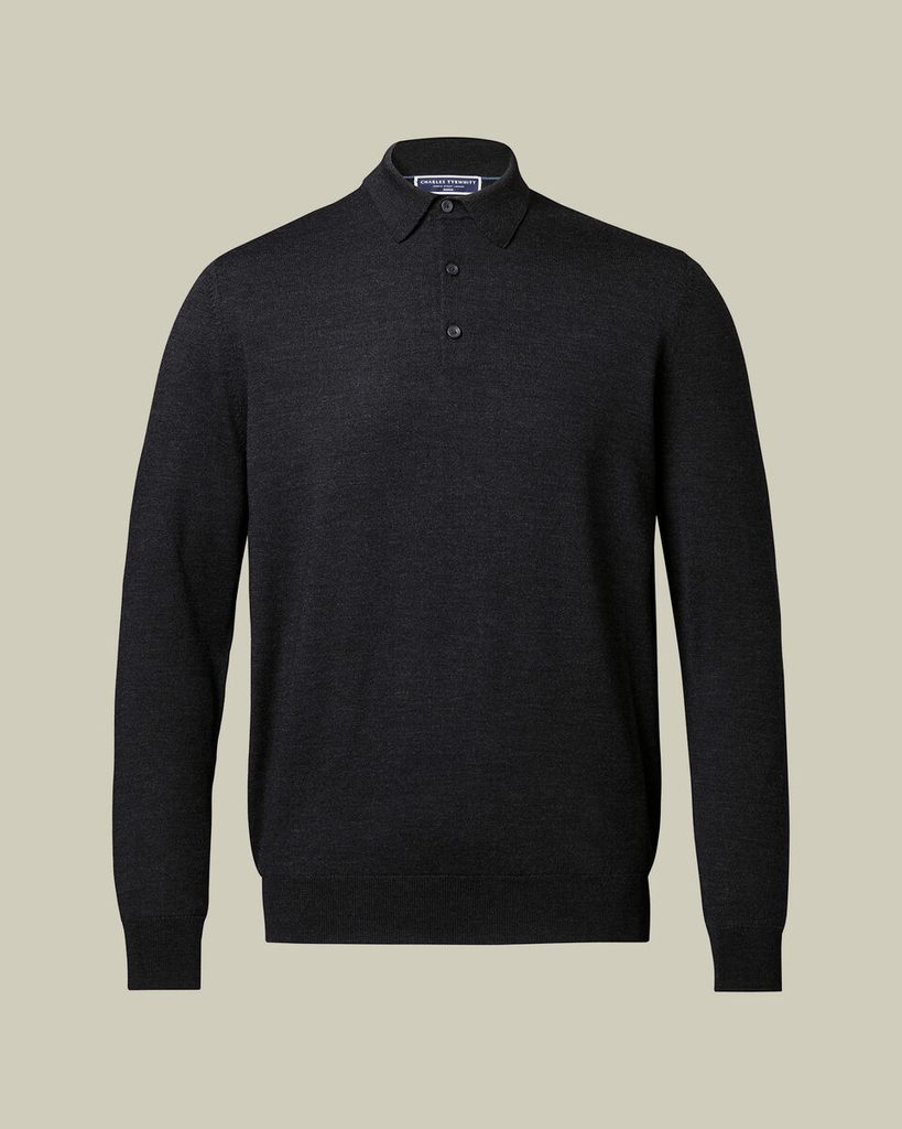 Das leichte Strick-Polo aus reiner Merinowolle in Dunkelgrau ist die ideale Wahl für die Übergangszeit und zum Unterziehen unter einem Sakko. Es verbindet den lässigen Look eines klassischen Poloshirts mit der Eleganz eines feinen Strickstoffs und wirkt so kultiviert und dennoch natürlich. Es eignet sich sowohl für das Büro als auch für einen entspannten Wochenendlook.