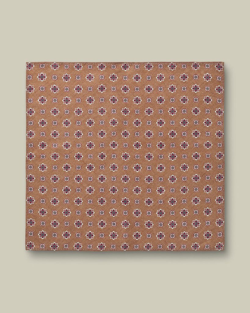 Charles Tyrwhitt Linen/Silk Geo Print Pocket Square — Camel