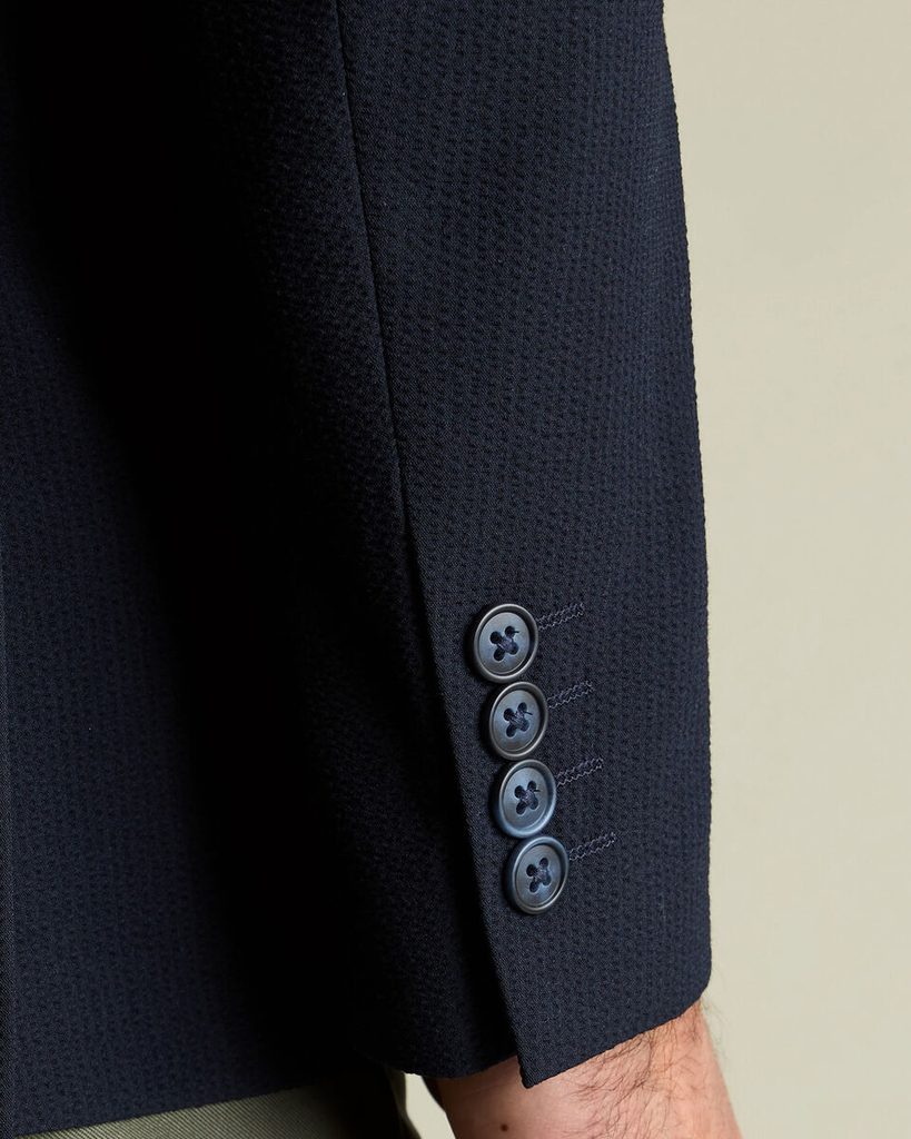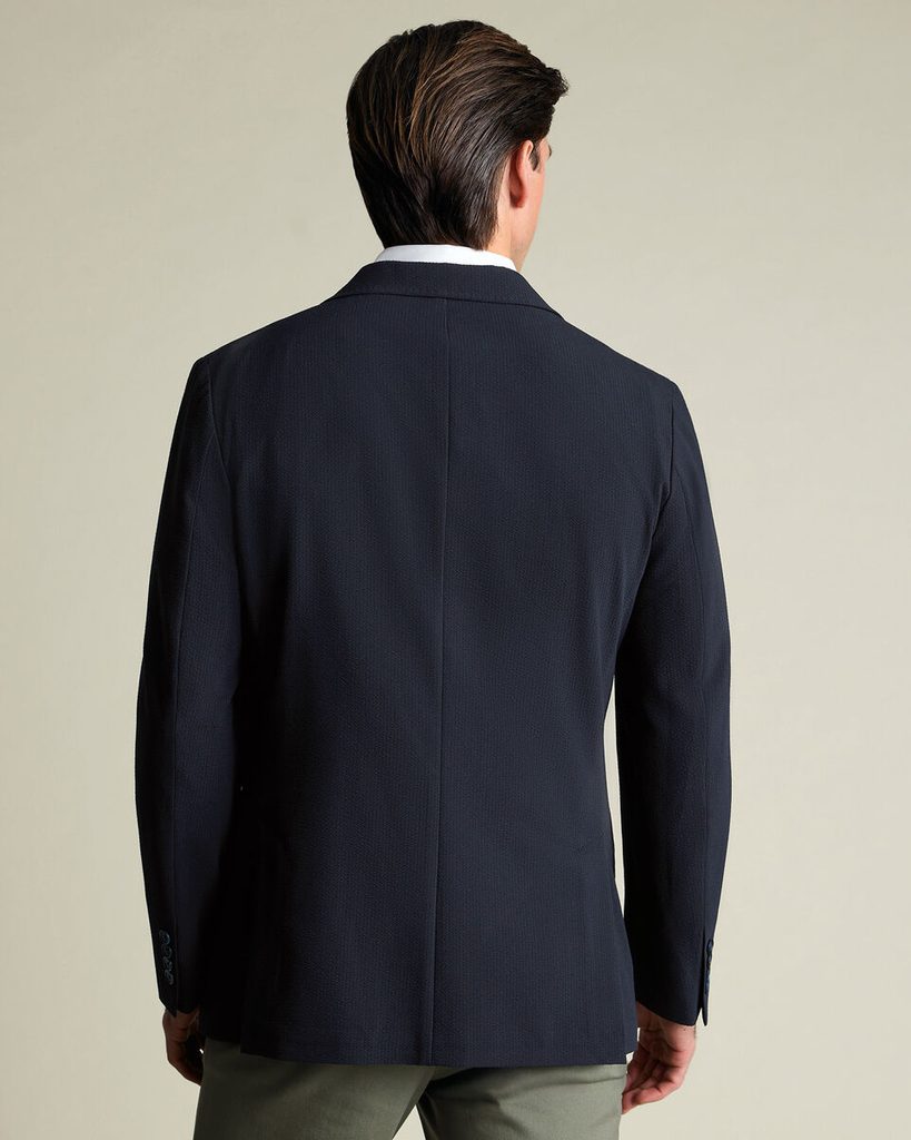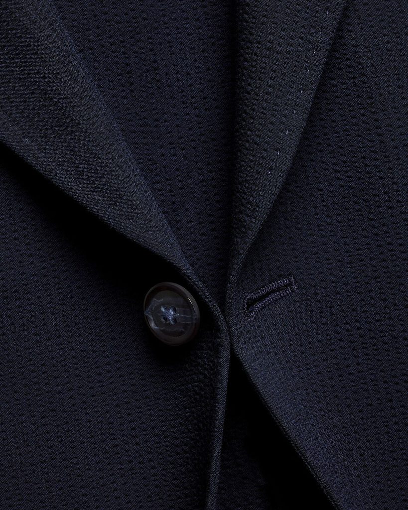 In einer deutlich weniger gestreiften, gedeckten Ausführung können Sie Seersucker auf diesem Blazer aus der Werkstatt von Charles Tyrwhitt erwerben. Neben der charakteristischen Wellenoptik besticht er durch eine bequeme Slim-Fit-Passform, eine klassische Anzahl an Taschen, Ziermanschetten mit 4 Knöpfen und dekorative Ziernähte am Reversrand, die auf Seersucker-Stoff wirklich wunderbar aussehen. Innen befindet sich eine Brusttasche, und im Sommer wird man sich auch darüber freuen, dass das Sakko nur teilweise gefüttert ist.
