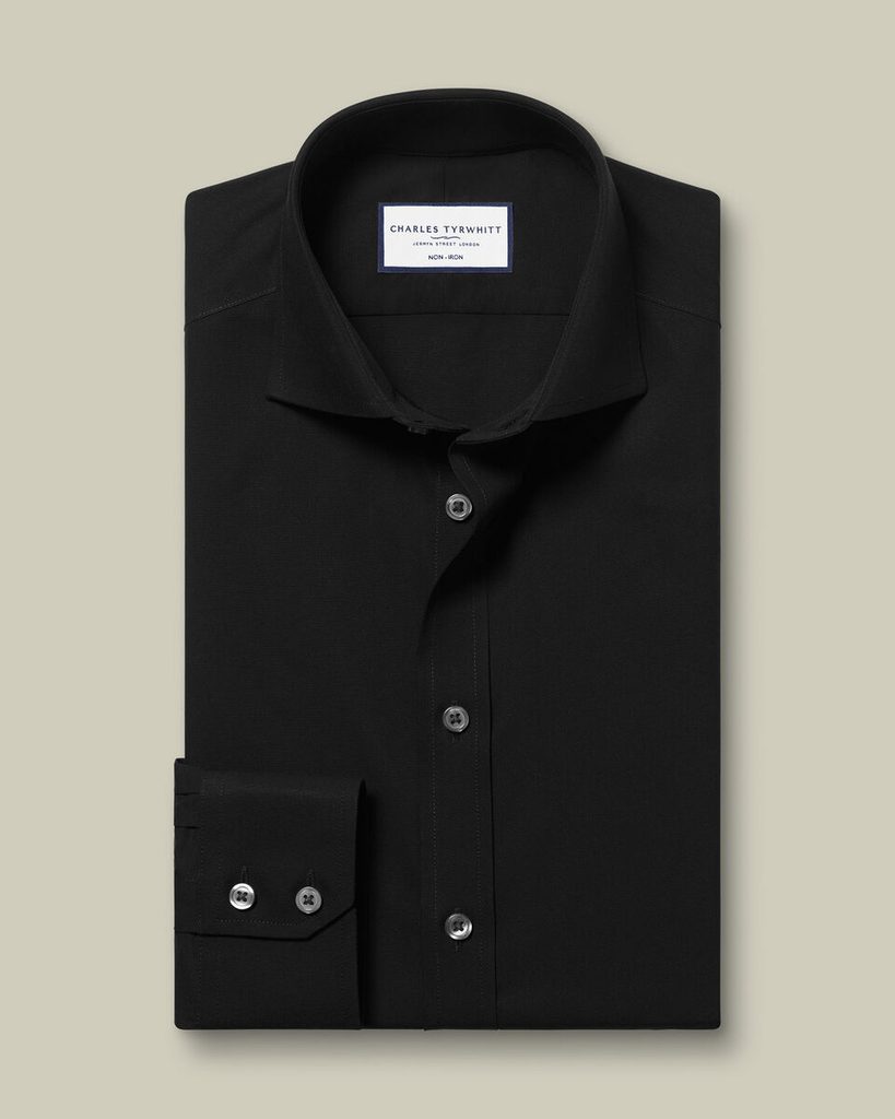 Hemden aus Baumwollpopeline sind ein Segen für jeden Mann. Die Popeline-Bindung ist weich und hautfreundlich, aber dennoch strapazierfähig. Dank ihrer Leichtigkeit eignet sie sich für das ganze Jahr. Dieses Modell ist in Schwarz erhältlich und passt daher gut zu blauen Blazern, aber auch zu Trauerkleidung.