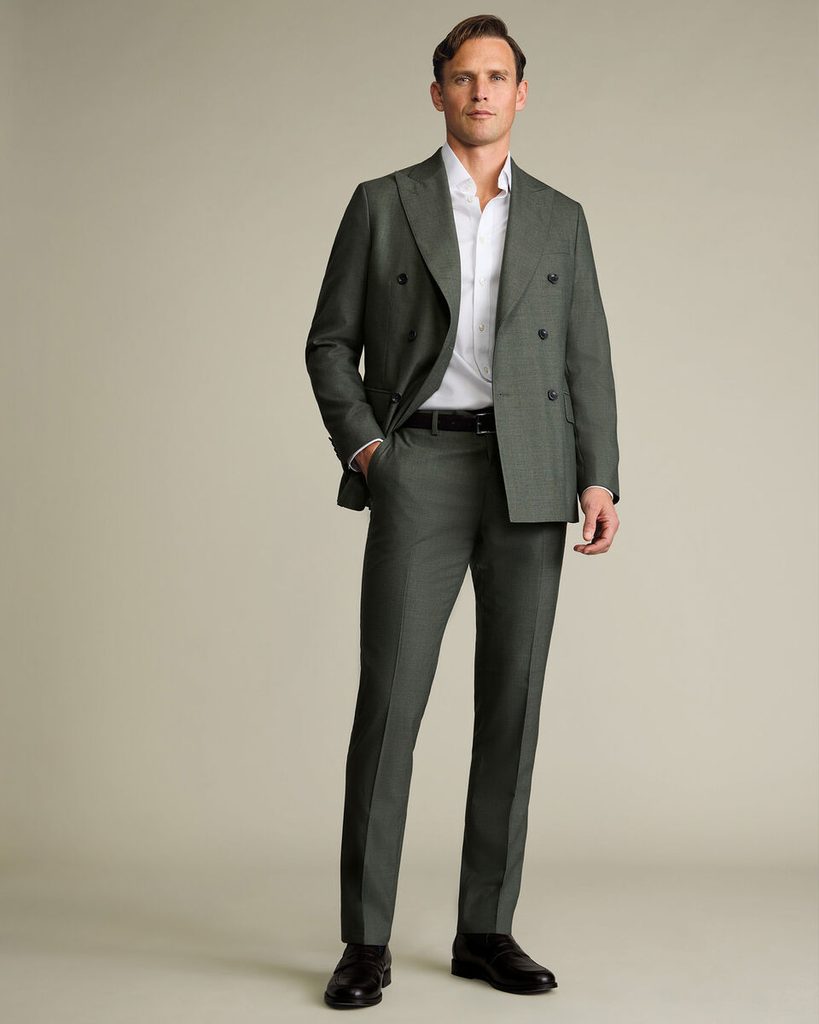 In der Praxis bedeutet dies, dass der Anzug lebendiger und tiefer wirkt als gewöhnliche einfarbige Wolle, aber nicht auffällig oder grell ist, sodass er nicht wie aus einer Disco stammt. Bei Super 120s-Wolle ist der Glanz subtil, während das Material gleichzeitig formstabil und knitterfrei ist.