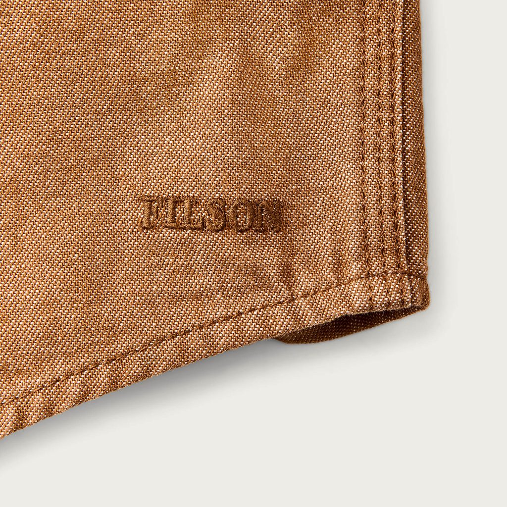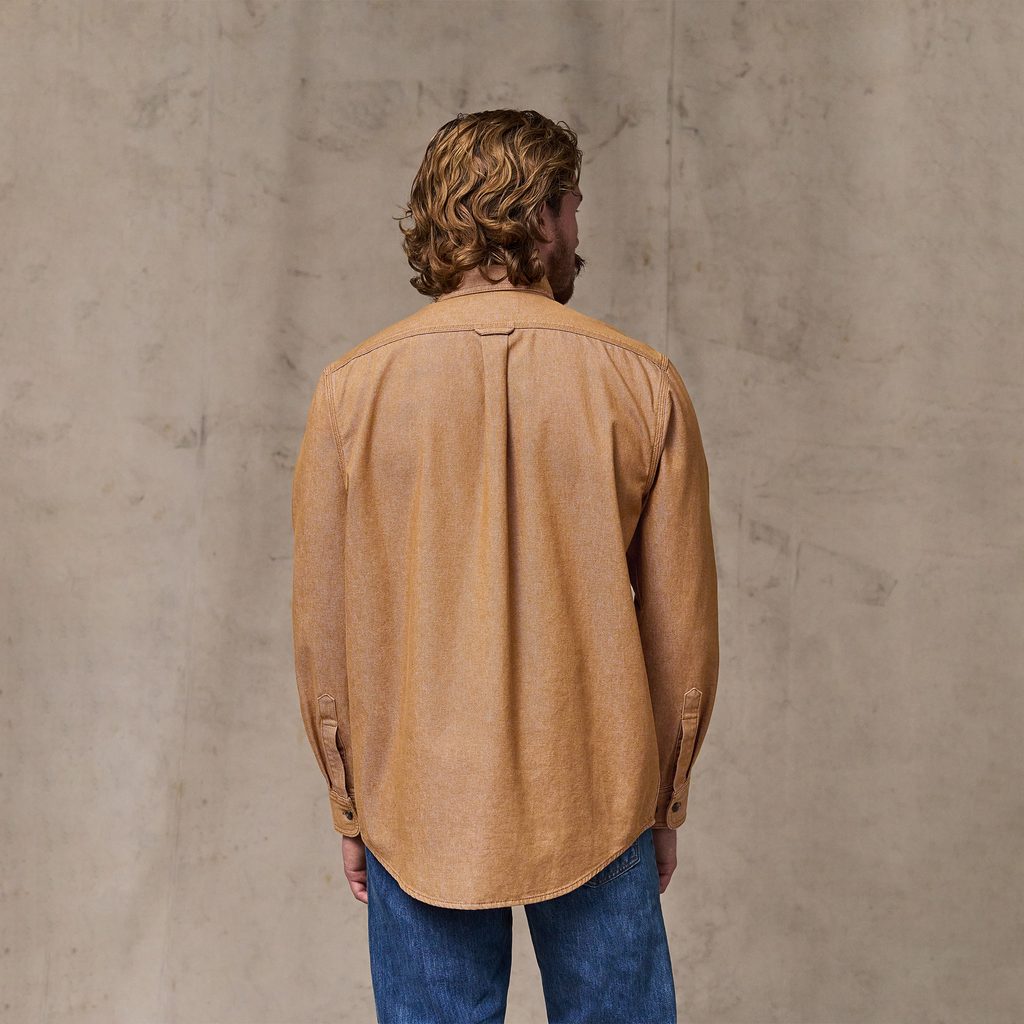 Die Jeansvariante des legendären Alaskan Guide Shirt von Filson – ein Hemd, das die amerikanische Workwear-Marke Filson seit über dreißig Jahren herstellt und das sich in dieser Zeit zu einem ihrer bekanntesten Modelle entwickelt hat. Hier ist es aus 7,5-oz-Baumwoll-Denim gefertigt, gewebt in einer 2×1-Bindung, also derselben, die auch für die strapazierfähigsten Jeans verwendet wird, jedoch in einer für Hemden geeigneten Stärke. Der Schnitt ist lockerer, mit Schlitzen am Rücken für Bewegungsfreiheit.