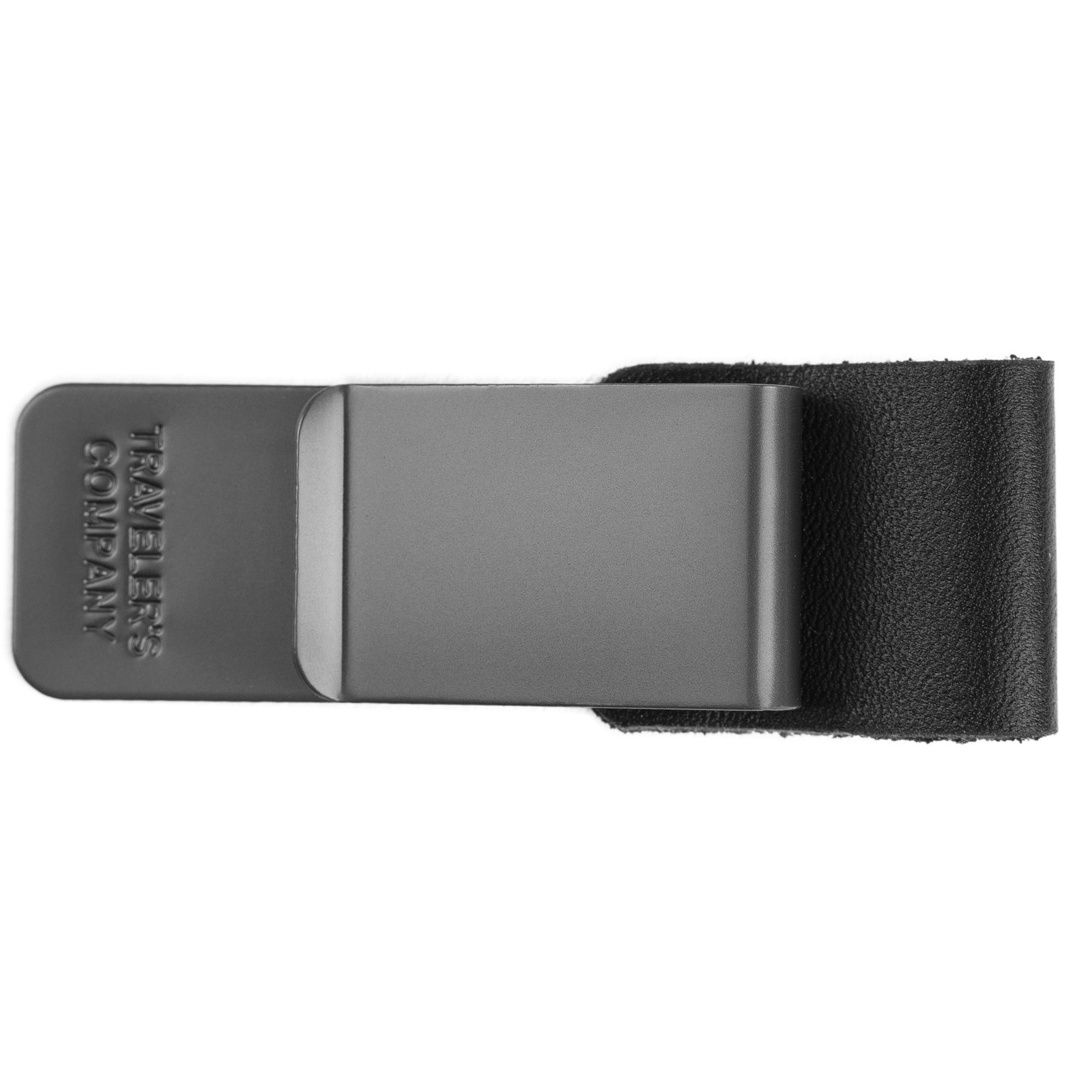 Füllerhalter für das Reisenotizbuch Traveler's Notebook. Befestigen Sie die Spange am Einband des Notizbuches und Sie können den Füller bei sich tragen ohne Angst zu haben ihn zu verlieren. Metallspange, die Öse selbst besteht aus unverarbeitetem schwarzem Rindsleder.