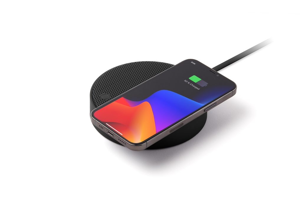 - Lautsprecher, Mikrofon und kabelloses Ladegerät in einem