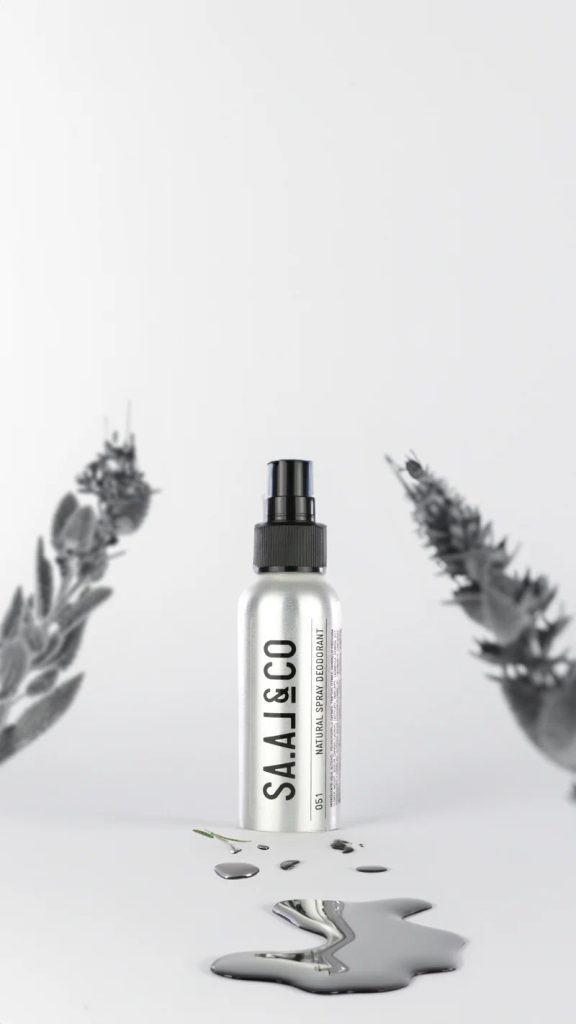 Aqua, Alcohol, Polyglyceryl-4-Caprate, Triethylcitrate, Hamamelis Virginiana-Blütenwasser*, Natriumcaproyl/lauroyl-lactylate, Parfum**, Lavandula-Hybrida-Öl*, Polyglyceryl-3-caprylate, Glycerin, Caprylyl/Capryl-Weizenkleie-/Strohglykoside, Salvia-Officinalis-Öl (Salbei), Fusel-Weizenkleie-/Strohglykoside, Natriumcocoylglutamat, Polyglyceryl-5-oleat, Glycerylcaprylat, Limonen**, Linalool**, Geraniol**, Citral**, Eugenol**, Citronellol**. *Zertifiziert biologisch **Natürlicher Duft