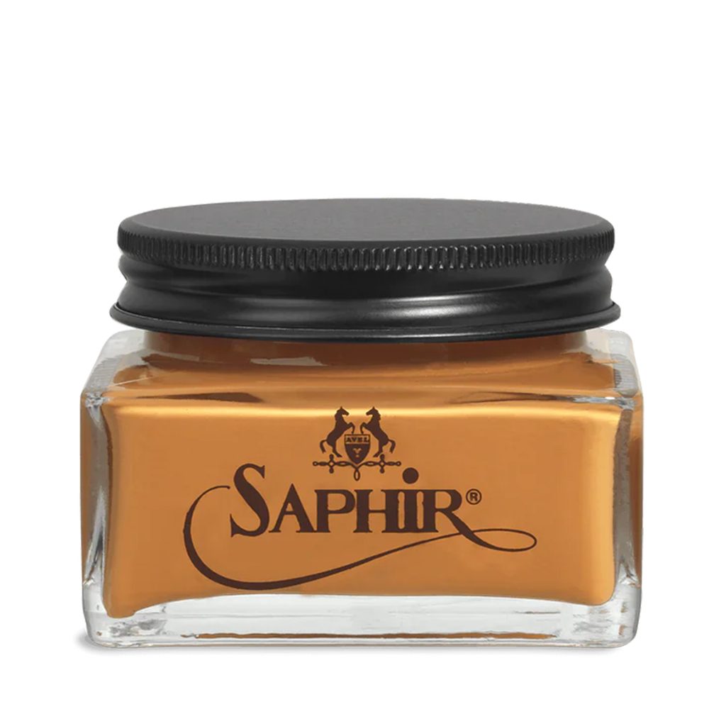 Saphir Pommadier ist eine natürliche Schuhcreme auf Basis von Bienenwachs, Terpentin und Sheabutter mit weiteren sieben pflegenden Wachsen und im Falle farbiger Varianten auch mit doppelt so viel Pigment wie herkömmliche Cremes. Sie eignet sich sehr gut, um kleinere Kratzer zu überdecken und den Schuhen ihre ursprüngliche Farbe wiederzugeben. Im Vergleich zu Schuhwachs erzielt man damit einen weicheren Glanz.