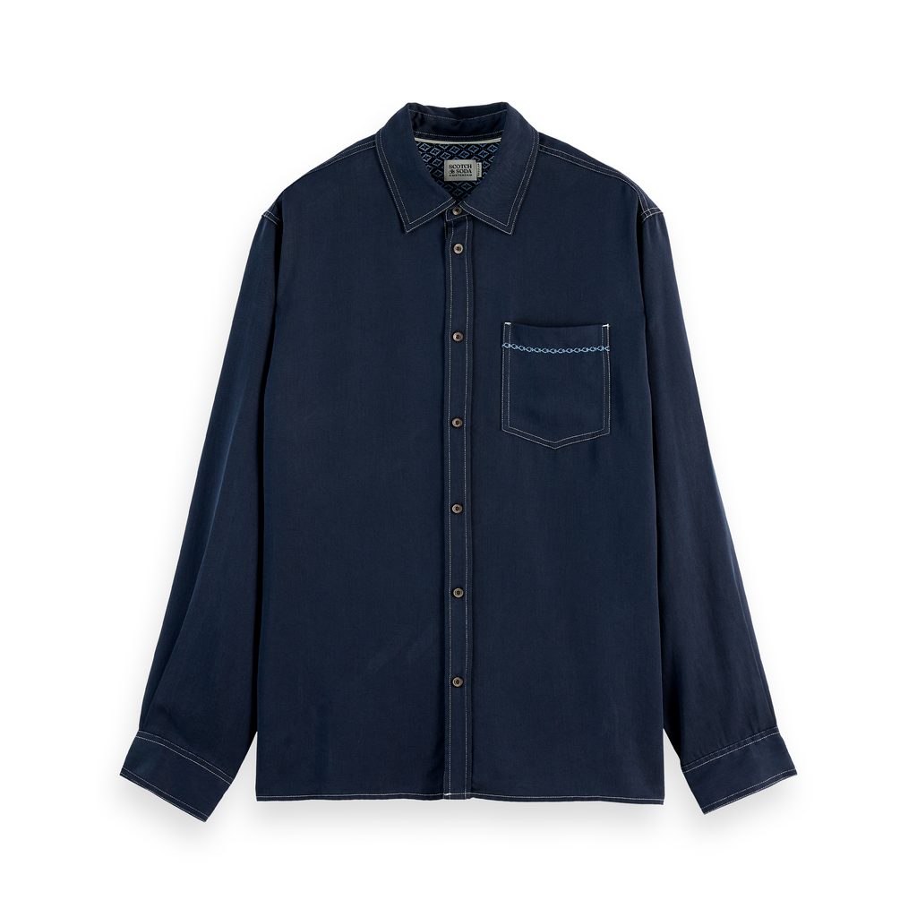 Die Weichheit von Lyocell ist schwer zu beschreiben. Das ganze Jahr über in etwas dichterem Gewicht und Köperbindung tragbar (dieses Freizeithemd ist einem Jeanshemd ähnlich, aber dennoch himmlisch weich), ist dieses Stück des niederländischen Studios Scotch & Soda durch und durch raffiniert.