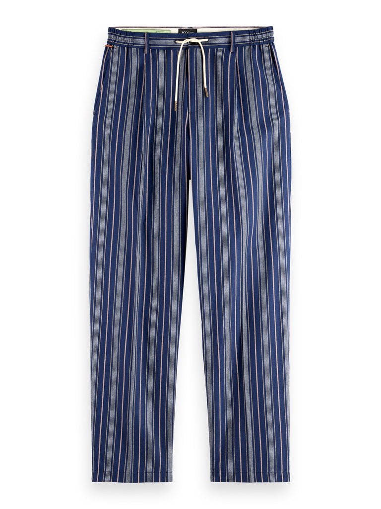 Lockere Hosen sind gut für Festivals, aber auch für den Alltag. Dieses Modell aus einer Mischung aus Leinen und Baumwolle hat das typische Design einer Jogginghose: lockerer Schnitt, bunte Längsstreifen, Knopfverschluss und Reißverschluss, darüber eine Kordel zum Binden. Die Weite der Hose wird bei diesem Modell durch einen deutlichen Stoffüberstand erreicht, der an der Taille zu einem Bund verläuft – so ist wirklich viel Platz für alles. Auf einen schönen Sommer!